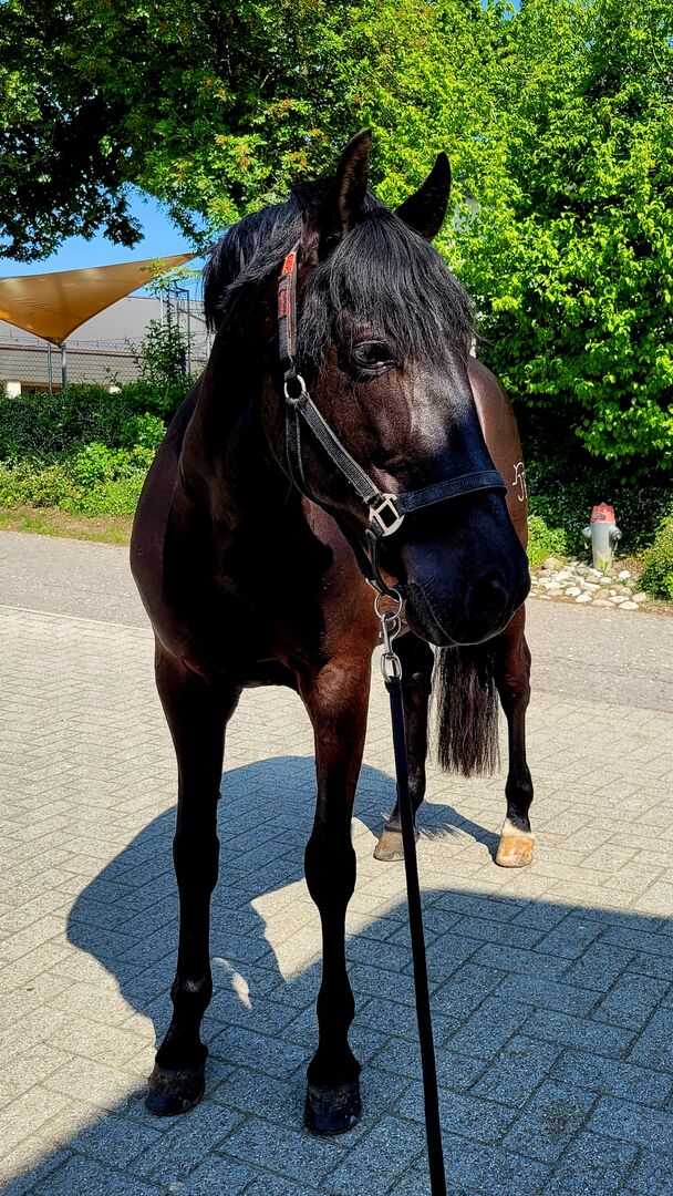 Han är en häst med stark karaktär, mycket känslighet och kraft. Oavsett om det är dressyr, hoppning, ridning eller helt enkelt markarbete, är han alltid 100% involverad i allt. Han kan alla de viktiga dressyrrörelserna. Piaff, passage och spansk skritt är en självklarhet. Jag har ägt honom i 4 år och köpte och importerade honom från Andalusia Almeria. Han är mycket människoorienterad men han väljer sina människor. På vintern har han lite problem med vår luft, vilket ibland kan leda till konjunktivit i hans ögon. Detta kan lätt hanteras med tårdroppar eller svart te. Han är lämplig för lastning och hovslageri. Han behöver helt klart en självsäker och tydlig ägare / hanterare. Han var hingst tills han var 6 år gammal. Vänligen kontakta oss för mer information. Han är belägen i Zürcher Weinland. Han har ett spanskt Cruzado-pass. Eftersom mamman inte var licensierad. Föräldrarna är båda PRE. Placera före pris !!! Provkörning mot en avgift.