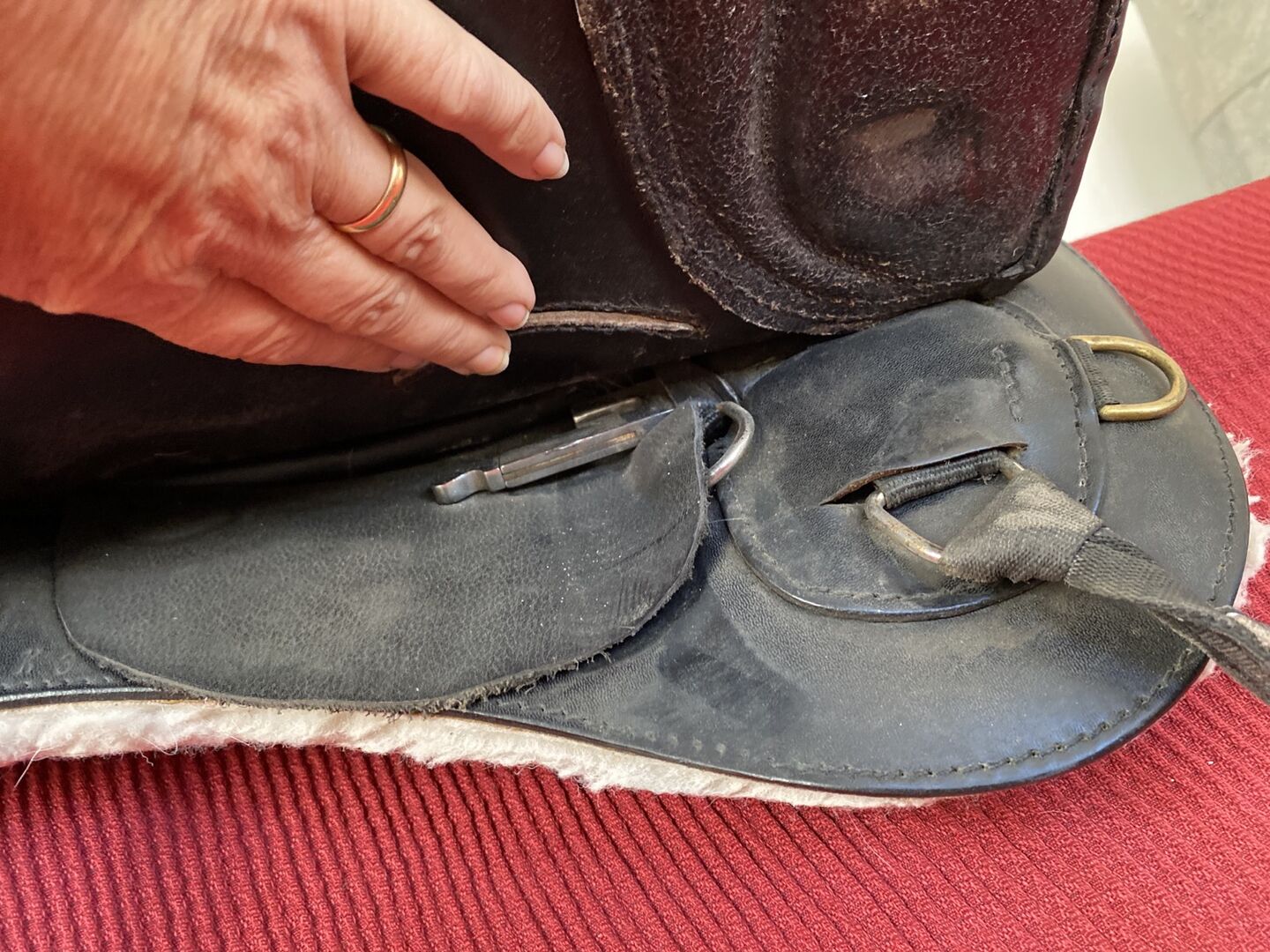 Säljer min vackra Twin light-sadel, som är tillverkad av Nomad och kan anpassas till (nästan) alla hästar. Sadeln har en rymlig sits. Jag kände mig inte vilsen ens med byxor i storlek 38. Sadeln möjliggör en balanserad sits med ett avslappnat bensläpp. Under långa ridturer känner man sig inte trängd och kan alltid variera sittställningen lite, vilket är mycket bekvämt för både häst och ryttare. Sadeln väger strax över 6 kg och har en högkvalitativ finish. Bra och stabilt läder har använts. Sadelgjorden är lätta att byta ut själv om det skulle behövas. De slingras helt enkelt in i motsvarande D-ringar. Eftersom det finns tre av dessa gördelringar på varje sida kan gördeln också anpassas. Stigbygelskaften är snäppspännen av hög kvalitet. Stigbygelskinnen kan dras över eller under sadelklaffen. Sadelns undersida är täckt med medicinsk lugg och dynan kan stoppas om. Hästen i fråga var en bred ponny, KW ca 35, med relativt rak rygg. Sadeln visar naturligtvis tecken på slitage (vilket är oundvikligt när man rider i terräng eller på distans), men är i mycket gott allmänt skick och kommer att fortsätta att tjäna sitt syfte under lång tid framöver.