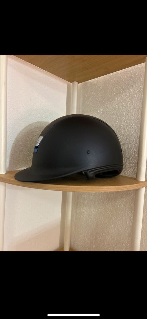 Samshield ridhjälm M glitter - Samshield ridhjälm Shadowmat med Alcantara i marinblå med Samshield glitterlogotyp. Den kungsblå ramen är ett absolut blickfång. Jag har använt hjälmen med nöje, den är fallfri och fortfarande i gott skick. Försäljningen inkluderar hjälmväska/dammskydd tyvärr utan inlägg. Små tecken på slitage finns. (Se bilder för skick)