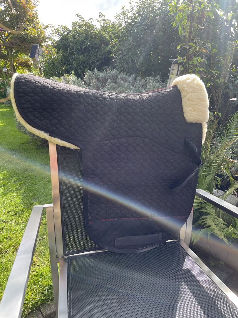 Sattelfilt i lammskinn Christ - Till salu är min mycket sällan använda och välbevarade sadelduk av Christ i storlek varmblod/dressyr. Schabraket är nytvättat.