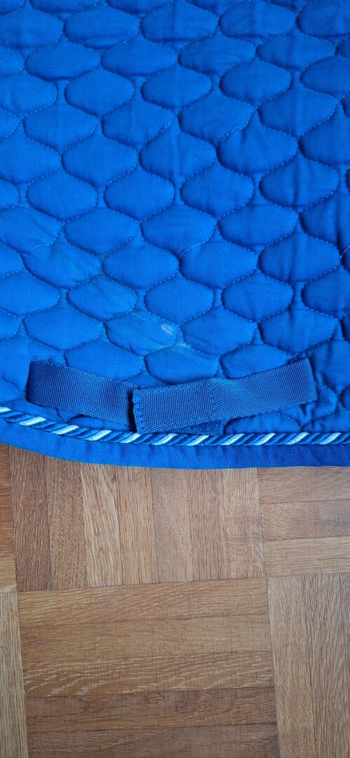 Schabrakkudde medium blå - Mellanblått schabraksunderlag med kantband i vitblått Bredd 61 cm Längd 54 cm Privat försäljning ingen garanti och ingen retur