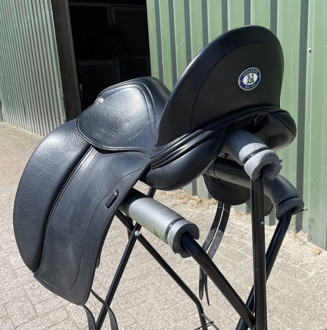Schleese Tango 3 17,5" RS HW svart franskt läder med dubbel klaff PSI-panel - Så bra som ny fin sadel. Med dubbelklaff 2 PSI-panel. Mycket stabilt läge och ger hästen mycket axelfrihet.