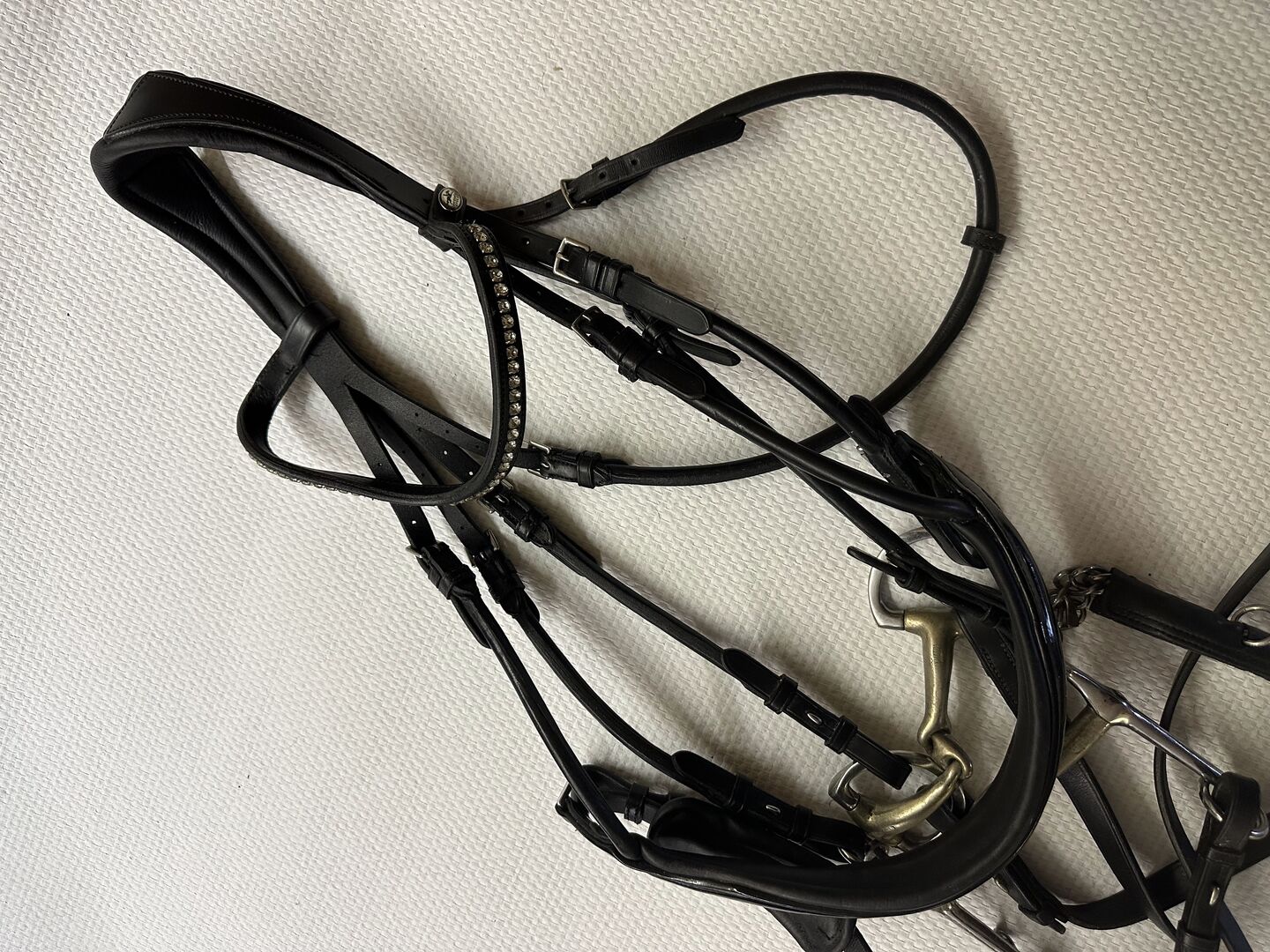 Schockemöhle dubbelt träns Venice WB svart anatomiskt rundsytt inkl. bett möjligt - vacker kantbit i utmärkt skick, mycket välskött, inga skador, inkl. Sprenger-bitar tillgängliga mot en extra kostnad, fler bilder på begäran