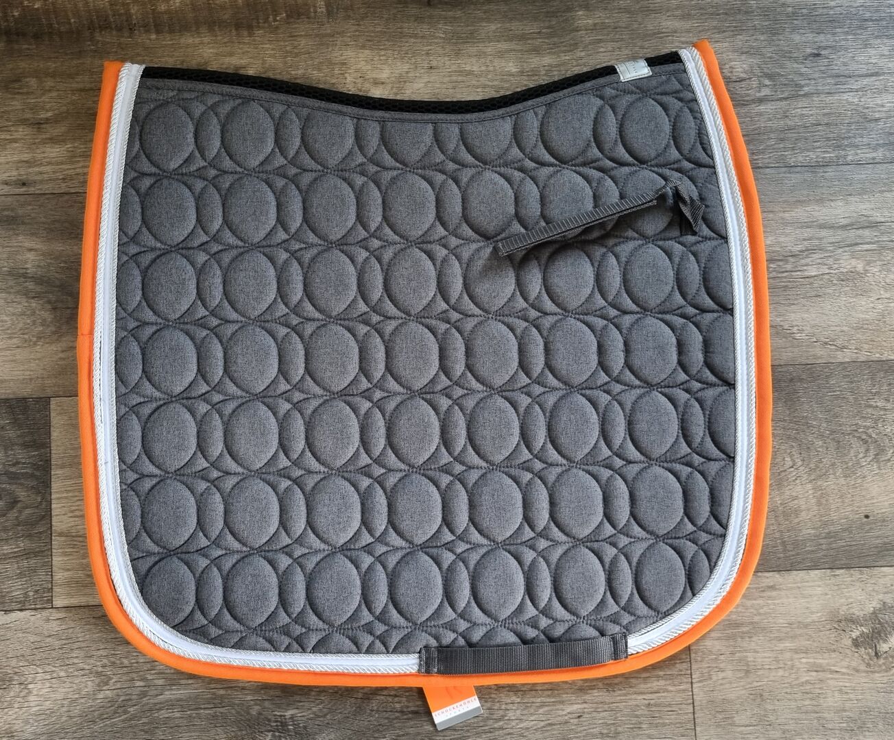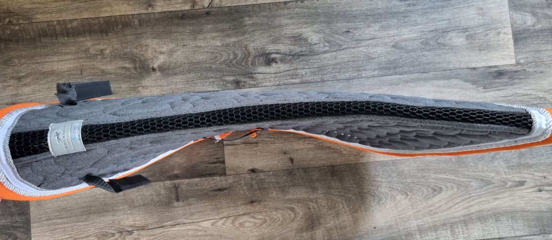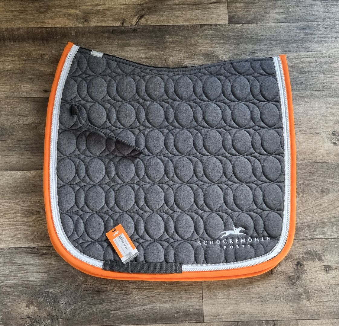 Schockemöhle Sadelunderlag Air Cool II DR Grå/Orange WB - Jag säljer min Schockemöhle Sports air cool schabraket i färgen grå/orange och storlek DR WB. Schabraket har aldrig suttit på hästen.