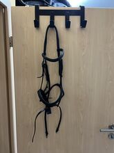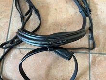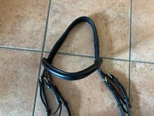 Schockemöhle Snaffle - Till salu svart snaffle med vit dekorativ sömnad av Schockemöhle i storlek stort varmblod.