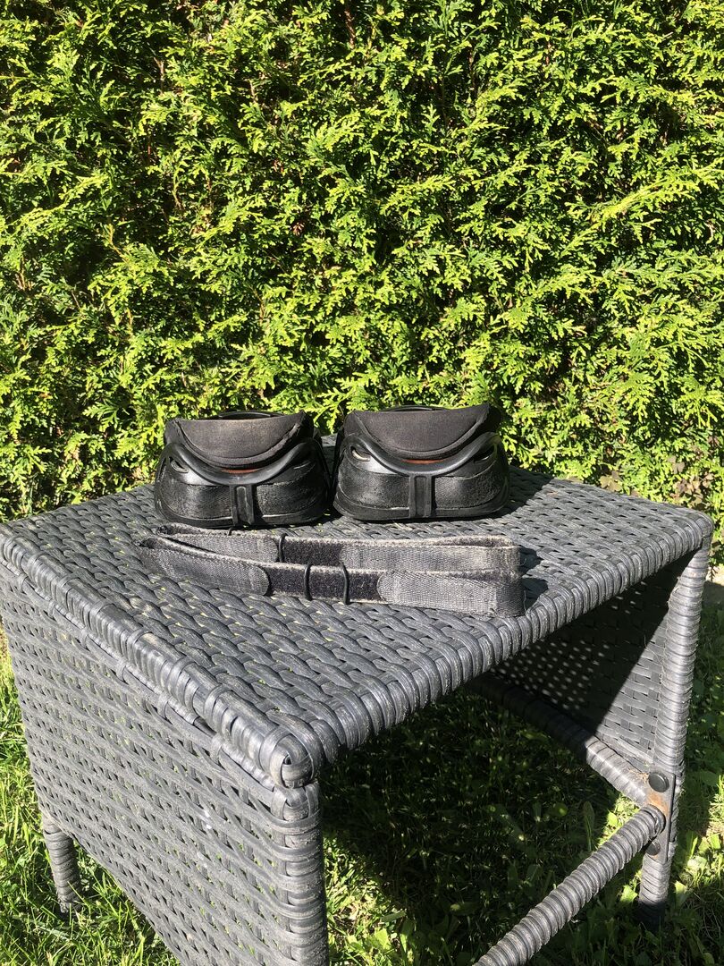 Schweiziska galoppörer SG3 - Begagnade schweiziska Galoppers storlek SG 3 till salu. Hovstövlarna är försedda med en hasrem, ett knölskydd och en fästrem.