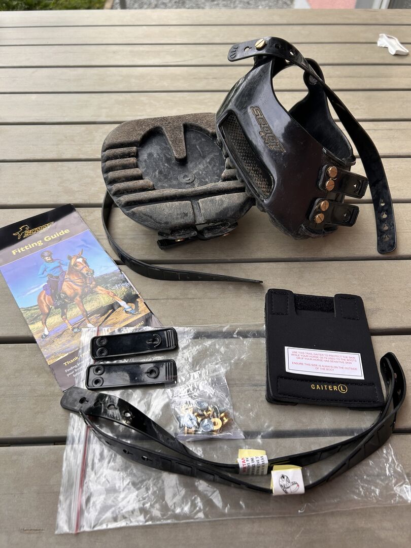 Scoot stövlar storlek 7 - Scoot stövlar storlek 7 med reservdelar, se bilder. Har använts exakt 6 gånger off-road. Bytt till ortopedisk hov. Bra skick. Nytt pris 160 €.