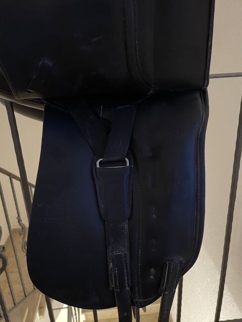 Detaljerad beskrivning: - Modell: Dressyrsadel Vigo - Märke: Seabis / Ruiz Diaz - Sitsens storlek: 17,5 tum - Djup sits för en nära ridkänsla - Fasta, påsatta knäveck för en stabil benposition benposition - Medellång sadelklaff - perfekt för olika storlekar på ryttare - Långa sadelgjordsremmar - Tillverkningsår: ca 2017 - Mjukt, formstabilt kvalitetsläder - Bakåtskuren sadelpanel - gott om axel frihet för hästens skuldror