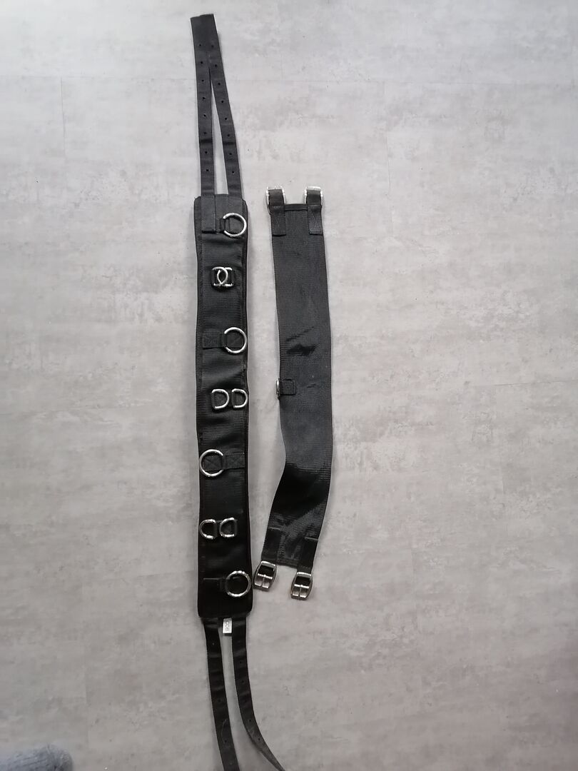 Selen för att ta sig upp i luften - Jag erbjuder en knappt använd longeringsgjord i storlek cob, i toppskick. Längden på gjorden är ca. 145 cm, bukgjorden är ca. 70 cm lång utan spännen.