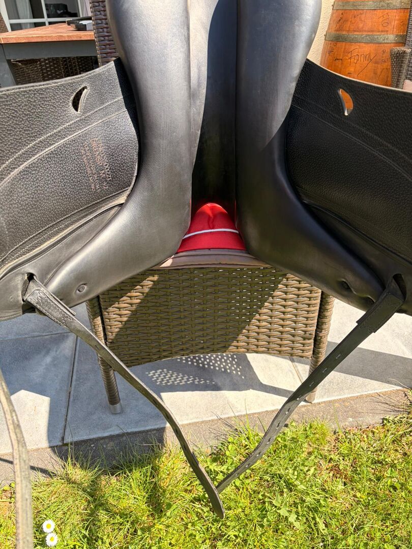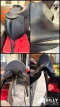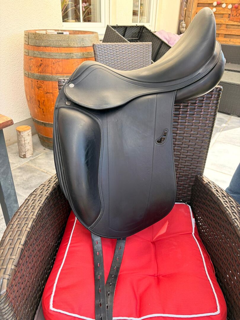 Selleria Equipe dressyrsadel 17N+2M - Jag säljer min älskade dressyrsadel eftersom den inte längre passar vår Haflinger. Toppsadel, toppskick förutom en liten skakning på bakre pommel. Sadelmakare kontrollerade sadel i april 2026 och fann att den var i toppskick. Normala tecken på användning närvarande.