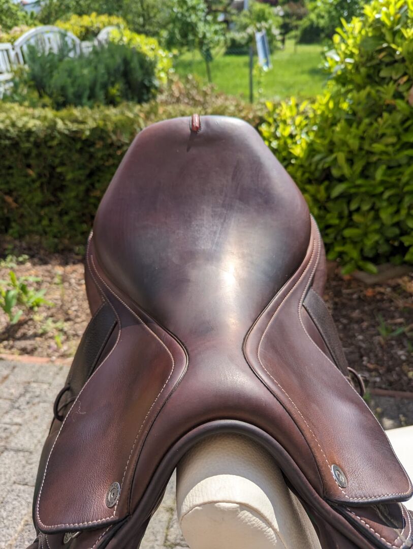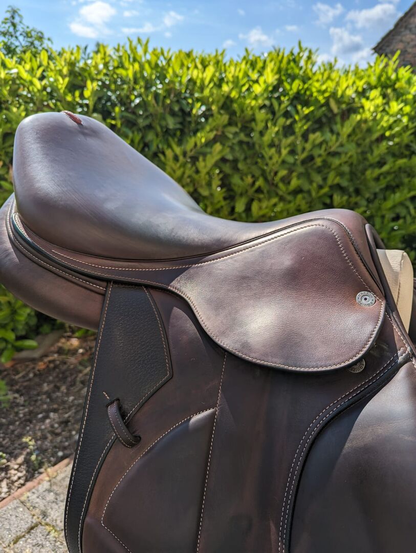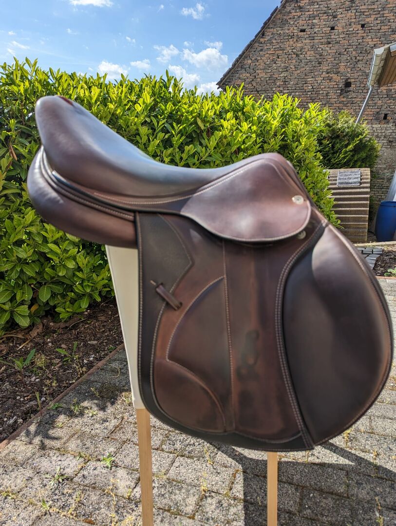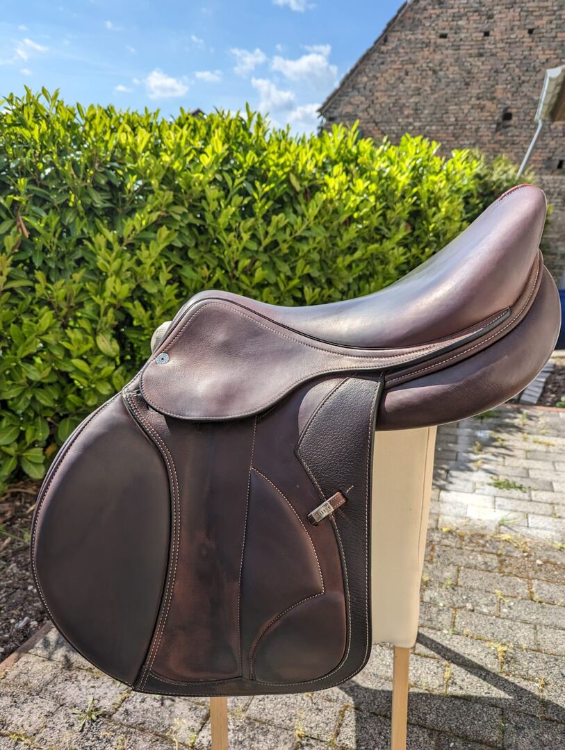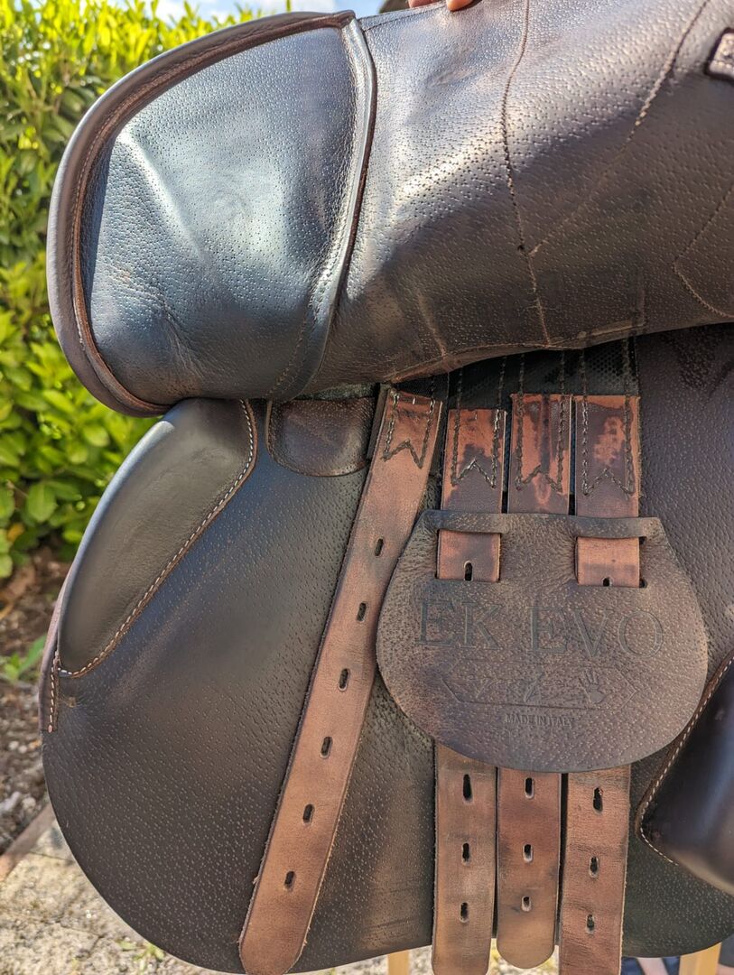 Selleria Equipe EK Evo Hoppsadel - Jag säljer min Selleria Equipe EK Evo hoppsadel eftersom den inte längre passar min häst. Sadeln har endast använts på en häst och är i mycket gott skick. Sätesstorlek är 17,5. Nytt pris var 4300€.