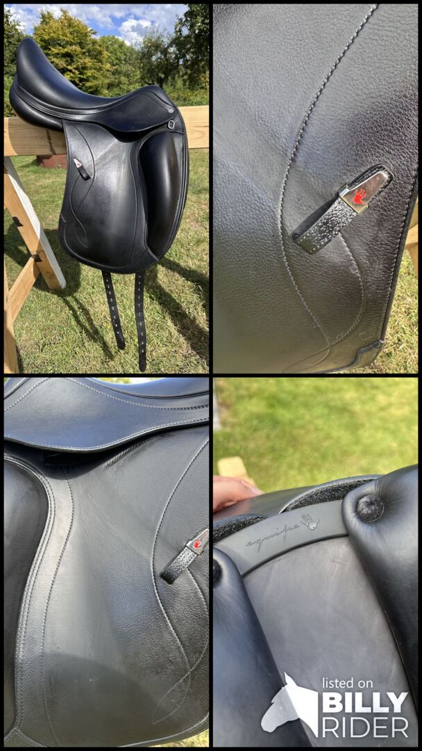 Selleria Equipe Olympia 17 5 inch M+1 sadel svart så gott som ny - Jag säljer min superbekväma Selleria Equipe Olympia dressyrsadel i 17,5 tum och kammarbredd M+1.