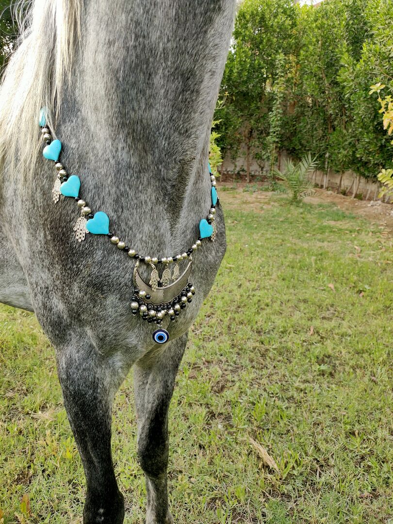 Set för hästshow: Showhalster, kedja, ledlina, halsband - Säljer en mycket dekorativ original arabisk showuppsättning - showgrimma med kedja och koppel (ca. 2 m lång med handögla), samt matchande halskrage / bröstplatta.