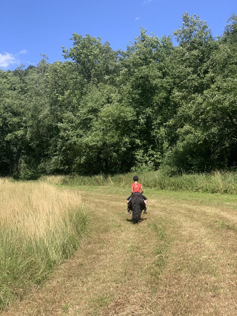 Dori kann/kennt es, an der Longe zu laufen, Bodenarbeit sowie reiten auf dem Platz und im Gelände. Sie wird nur mit Kappzaum und Zügeln, aber ohne Gebiss geritten, da sie sehr sensibel auf Hilfen reagiert und ein Gebiss bei ihr nie notwendig war. Dori ist lieb im Umgang mit Kindern, sie kann geführt werden und kennt Kinder im Alter von 2-10 Jahren auf ihrem Rücken. Eine ihrer Pflegebeteiligungen ist 12 und kann problemlos mit ihr allein spazieren gehen. Draußen gehen wir meistens mit Strick in allen Gangarten ausreiten, haben es aber auch schon einige Male ohne Strick ausprobiert, was auch sehr gut funktioniert hat.