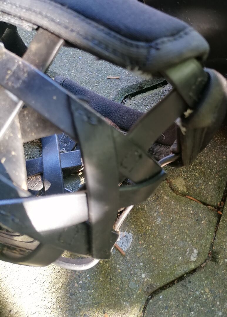 Hade dem kort för min mini Shetty men han behövde dem inte länge. Jag har sytt dynorna lite tätare på utsidan eftersom de alltid fastnade på. Jag förkortade spännena för att fästa vid grimman eftersom de var alldeles för långa.