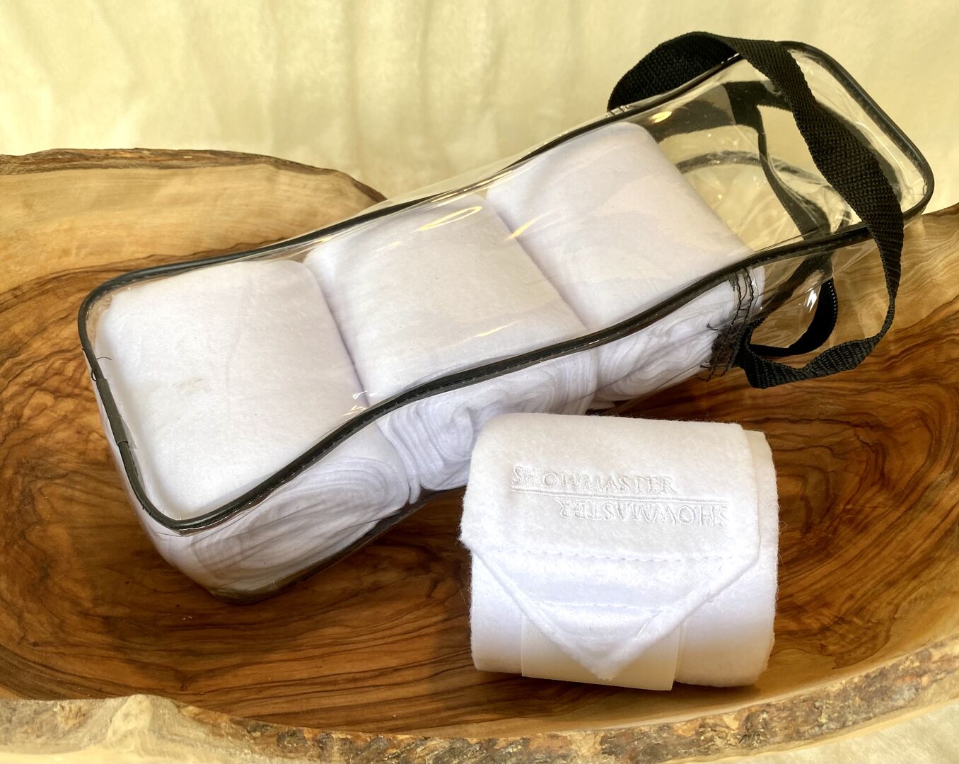 Jag säljer fleeceförband från Showmaster. De har använts en gång och har tvättats.