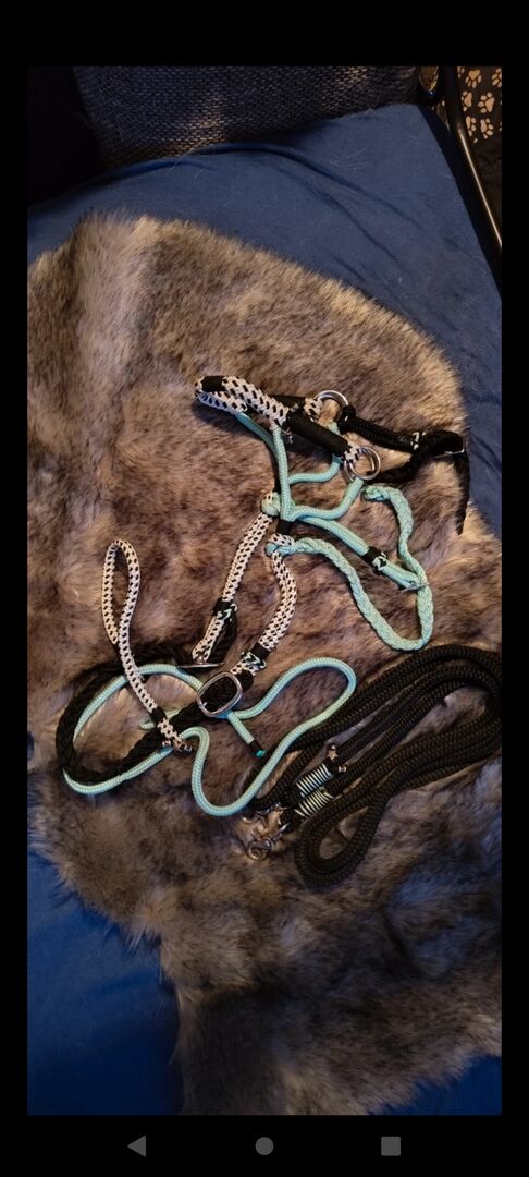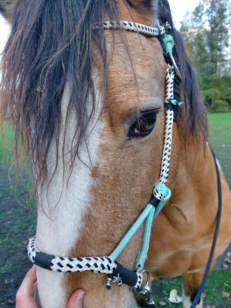 Sidopull-rep - Erbjuder handgjord sidepull i en vacker turkos. Den har bara varit på hästen några gånger, är lätt att rengöra och kan justeras i oändlighet. Tyglar ingår.