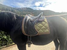 Sadeln användes under en tid på en PRE-hingst med hög mankhöjd. Den passade bra och var bekväm att sitta i.