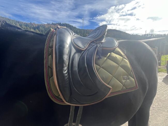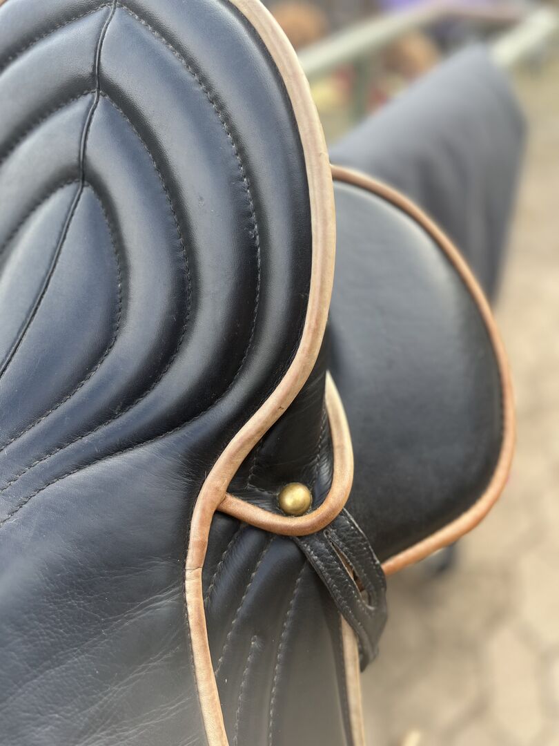 Till salu är en chic barocksadel från Signum. Modellen ska vara Omega i 17,5". Den är svart med en ljusbrun kant. Tyvärr passar den inte min spanjor. Ryggen är för kort.
