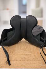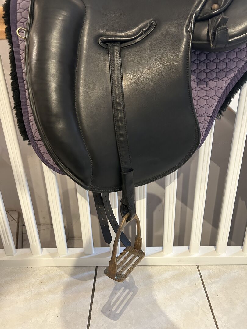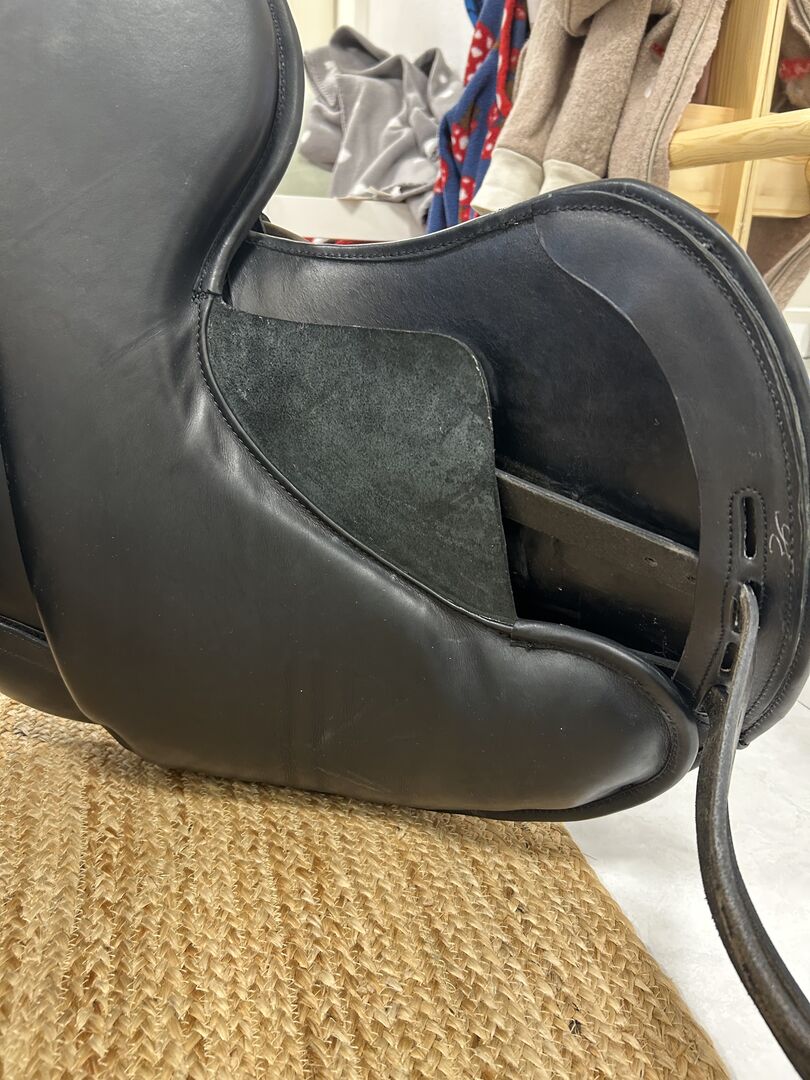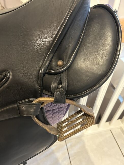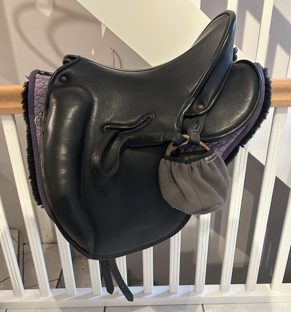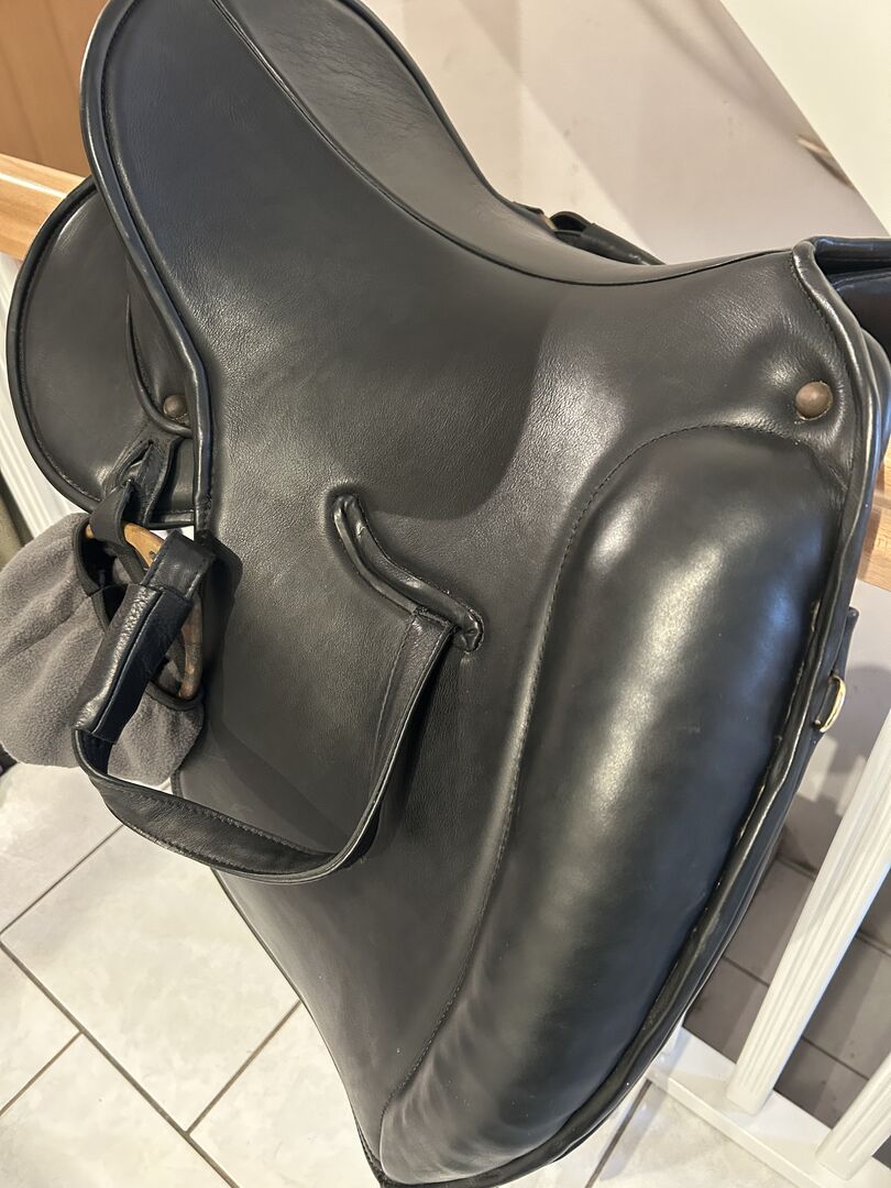 Sadeln är i gott skick. Dynorna är nästan som nya, eftersom sadeln bara användes lite eftersom min häst blev oridbar kort efter att jag köpte den. Lädret är mjukt och välvårdat. Minimala tecken på användning finns. Sadeln har endast förvarats i ett uppvärmt sadelkammare. Originalfakturan finns tillgänglig.