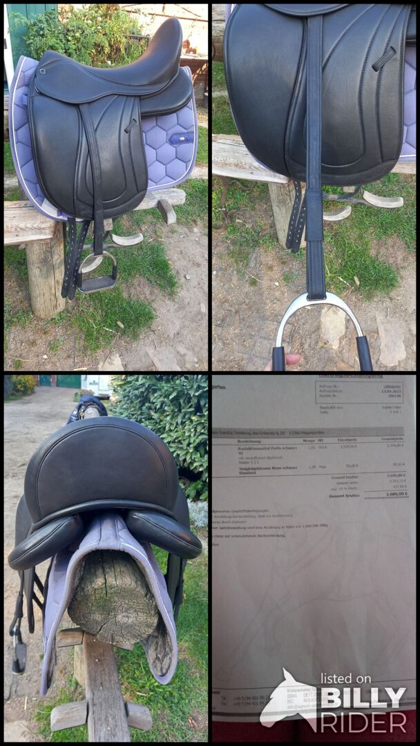 Säljer min Signum Piaffe svart, storlek 40 med mono stigläder. Sadeln har använts kortvarigt 5 gånger. Pad 3 3 3 3 med justerbar kotlettplatta. Anledning till försäljning... Jag gillar det bara bättre i en western sadel. Hämtning möjlig i Hoppegarten/Brandenburg