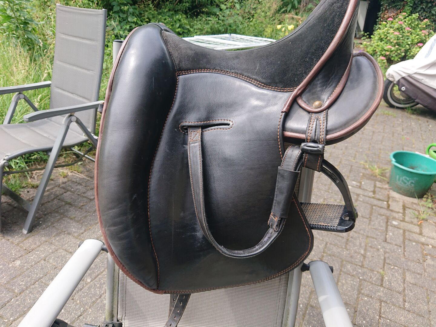 Signum sadel - vacker och bekväm Signum-sadel, steglöst justerbar sadelgjord, komplett med färgmatchande stigläder och stigbyglar