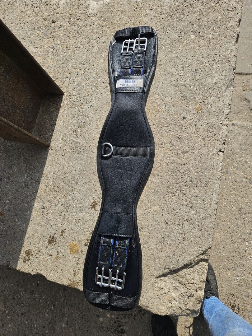 Signum Sadel Classic - Sadeln är i mycket gott skick. Kavelplattan är justerbar. Färg svart, med vita sömmar. 18" Trädlängd 1 Pad 4/4/4 Monterad på en PRE med mycket mankhöjd. Mycket bekväm. Normala spår av användning. En söm är något skadad, men orsakar inga problem. Ett stigläder har en liten defekt. Se bilderna. Med stigbyglar och stigläder. Stigbygelomfånget kan tas över. 60 cm lång. Har regelbundet kontrollerats och stoppats av signum. Gjordremmar i toppskick. Kan ses med nöje. Säljs endast eftersom jag byter till western.