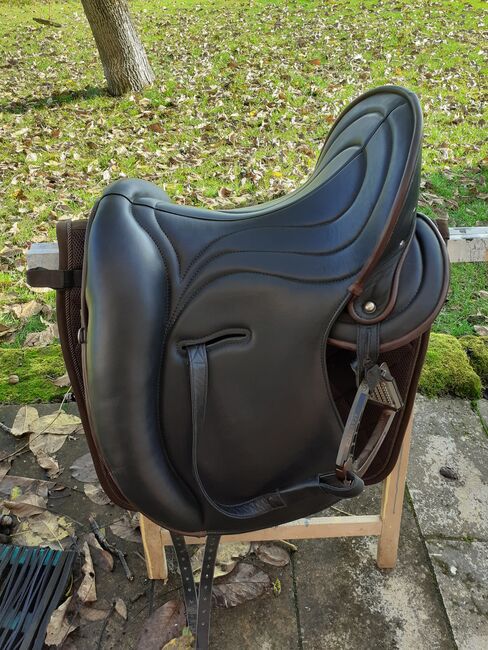Signum Tulipa sadel storlek 40 - Till salu är min vackra Signum Tulipa skräddarsydda sadel. Den renoverades och stoppades i april 2025. Jag köpte den som en lagersadel i nästan nyskick och den erbjuds nu även inklusive mono stigläder och sadelgjord om så önskas. Alla som känner till Signum vet om kvaliteten och att varje sadel kan skräddarsys för varje häst. Den här sadeln imponerar med sin djupa, bekväma dressyrsits, sin närhet till hästen och sitt speciella utseende. Det underbart mjuka svarta lädret ramas in av bruna sömmar och Swarovski-stenarna som är fästa på sadelns baksida är mycket speciella och ett absolut blickfång. Denna fantastiska sadel är till salu för 2550,00 Euro VB. Eftersom detta är en privat försäljning ges ingen garanti.