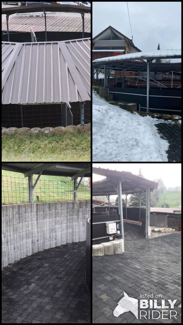 Skrittmaskin, för 4 hästar - Säljer vår lite använda, täckta skrittmaskin för 4 hästar. Den har en ytterdiameter på 14 meter. Den kan dock ställas in variabelt mellan 13 och 16 meter.