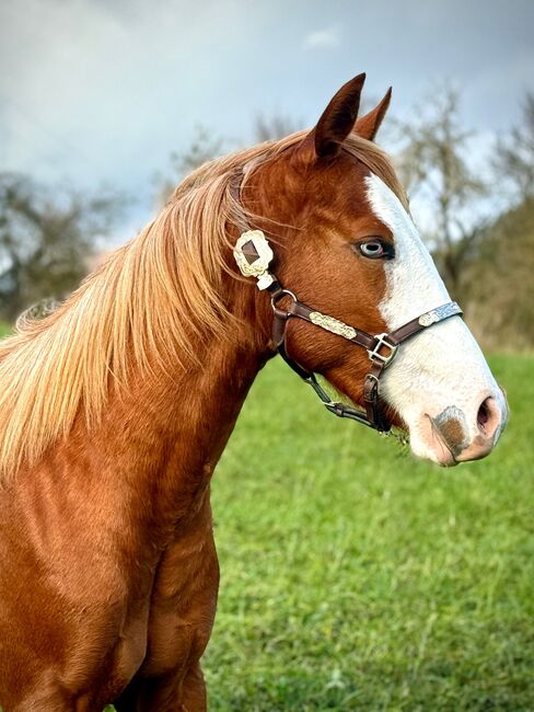 Gotta Cat Gun - ett exceptionellt typiskt Quarter Horse-sto, född den 10.03.2024, sorrelfärgad och med en förväntad slutlig höjd på ca. 145-150 cm - ett riktigt blickfång med sitt blå och bruna öga och sina uttrycksfulla markeringar. Hon imponerar med sin korrekta konformation, starka grund och vackra, balanserade muskulatur. Honey är frisk, regelbundet avmaskad, vaccinerad och alltid exemplarisk hos veterinären och hovslagaren. Hon växer upp i en flock i ett öppet stall med betesmark och visar utmärkt social kompatibilitet. Det bästa fodret, mineraler och kärleksfull daglig vård säkerställer att hon utvecklas optimalt. Gotta Cat Gun har en karaktär som inte lämnar något övrigt att önska: hon är vänlig, öppen, människonära och samtidigt alert, mycket intelligent och självsäker. Stoet älskar att kela, visar mycket hjärta och har en imponerande snabb reaktionsförmåga. Hennes rörelser är smidiga och kattlika - en tydlig indikation på hennes enorma talang för klippning. Hon tar redan varje tillfälle i akt att visa upp sin naturliga ko-känsla. Tack vare den dagliga hanteringen är hon absolut pålitlig: hon behärskar hela föl x1, från att leda, binda upp, sköta och tvätta till trailerkörning, veterinär och hovslagare. Barn kan också leda Honey utan problem. I enlighet med sin ålder har hon ännu inte arbetats ytterligare. Med sin mycket intressanta stamtavla (Metallic Cattack x Spooks Gotta Gun), sin talang och sin starka karaktär har hon allt man kan önska sig av en lovande unghäst för klippsporten. Samtidigt är hon ett attraktivt prospekt för show, fritid och senare avel. Gotta Cat Gun har AQHA-papper och ett DQHA-hästpass. En befintlig livförsäkring med "unserviceability"-modulen kan övertas på begäran. To the seller's offerlaunch