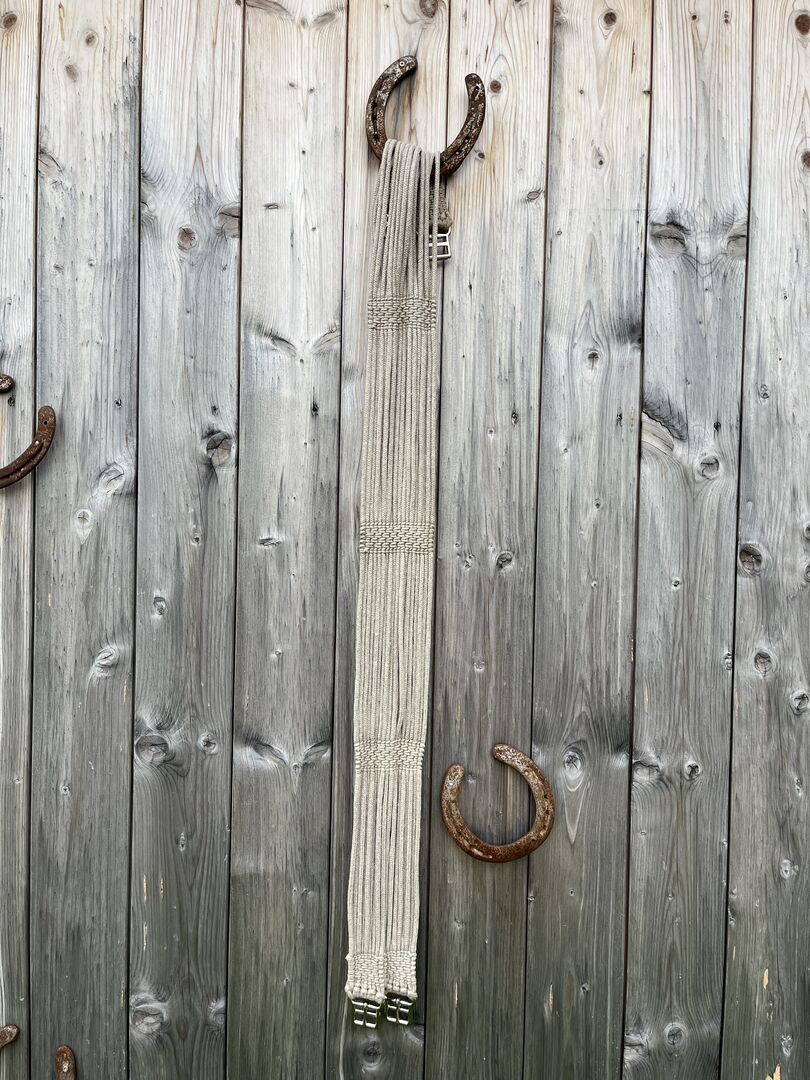 Sladdbälte Röösli - Jag säljer en lite använd, mycket högkvalitativ snörgjord från kvalitetsmärket Röösli. Den är tillverkad av lin och är enligt tillverkaren särskilt lämplig för unga och känsliga hästar. Längden mätt utan spännen är 120 cm, med spännen 130 cm. Sadelgjorden är tillverkad i Schweiz, NP var 400.
