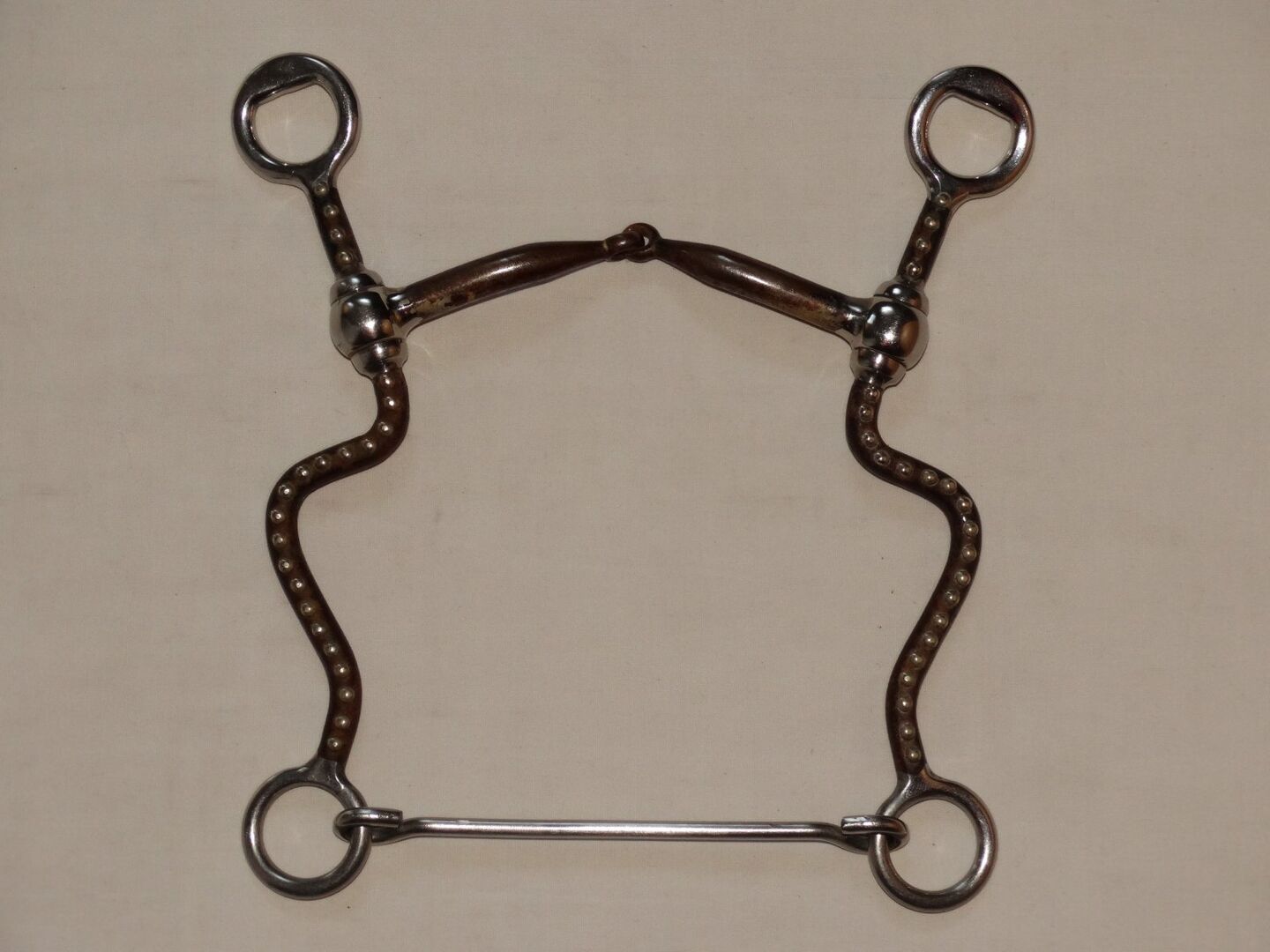 Snaffelbit med skaft 13,5 cm lång Sweet Iron Passar med prickar & distanser - Begagnat träns med skänklar till salu. Storlek 13,5cm. Långt Sweet Iron bett med prickar & distanser.
