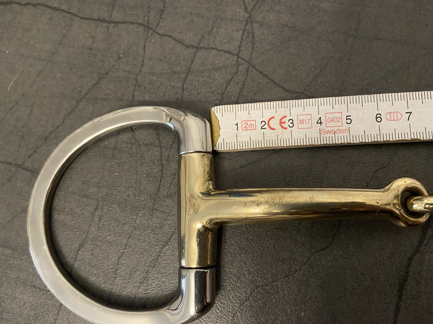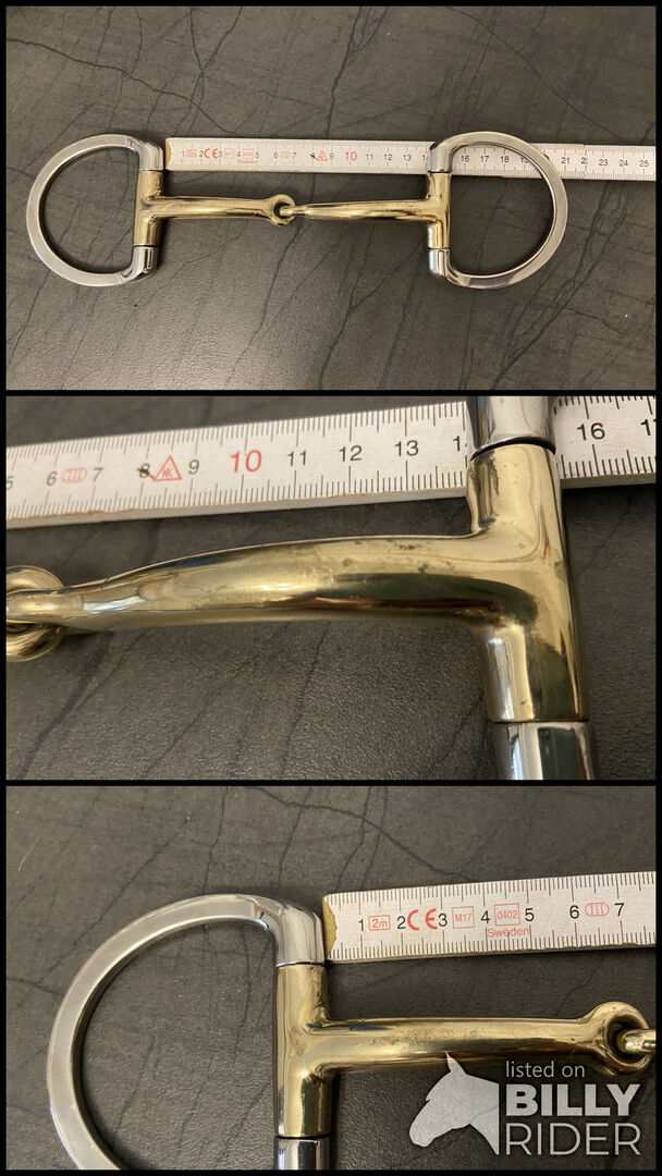 Anatomiskt formad. Enstaka trasiga. Styrka 12 mm. Bettet stimulerar salivation och uppmuntrar till lösryckning. D-ringarna är tillverkade av rostfritt stål rostfritt stål. Munstycket är tillverkat av en nickelfri legering som är mjukare än rostfritt stål och därför mjukare för hästens mun. Biten har använts två gånger. Ursprungspris 59,90 € (faktura juni 2021 tillgänglig) Längd: 14cm
