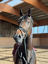 Snaffle round sydd av myunicorn modell Vittoria - Vacker rundsydd träns. Extra mjuk stoppning vid hjässan. Nosgrimma i patent med vitt foder. Även tyglarna är rundsydda. Med antigribbelbeläggning. Smalt pannband i bruna nyanser
