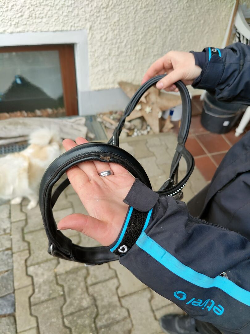 Snaffle storlek kob - Begagnad sadelgjord, storlek cob, i gott skick. Näsbandet har tagits bort.