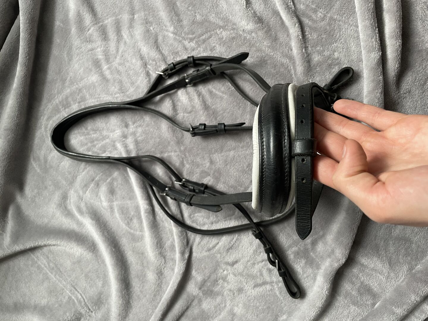 Snaffle utan pannband - Svart/vit träns i mycket gott skick.