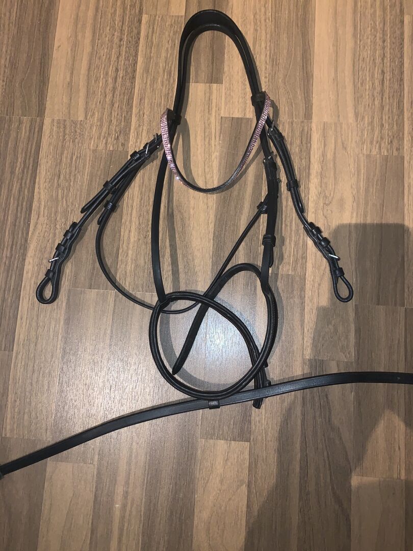 Snaffle Warmblood - Väl underhållen sällan använd träns med rosa glitter pannband