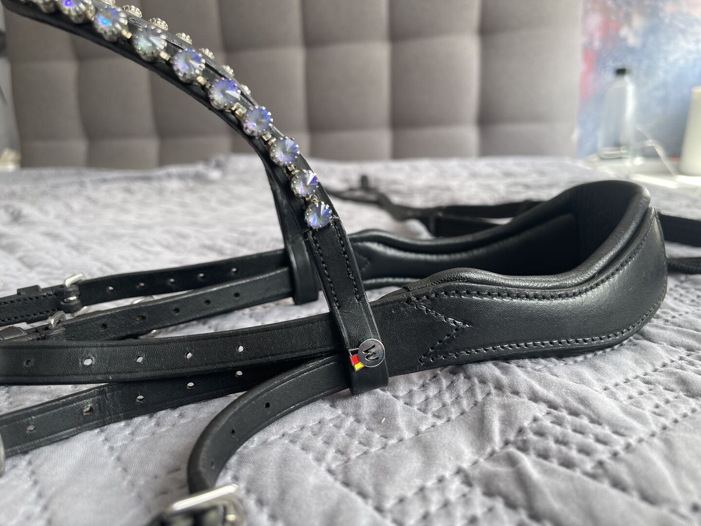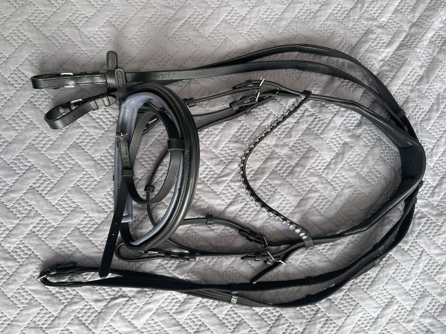 Snaffle WB, engelsk-kombinerad - Säljer ny engelsk-kombinerad träns, storlek warmblood. Har bara varit på hästen under en montering och är därför praktiskt taget ny. Underbart mjukt läder, särskilt i nacken, men passar tyvärr inte min pojke.