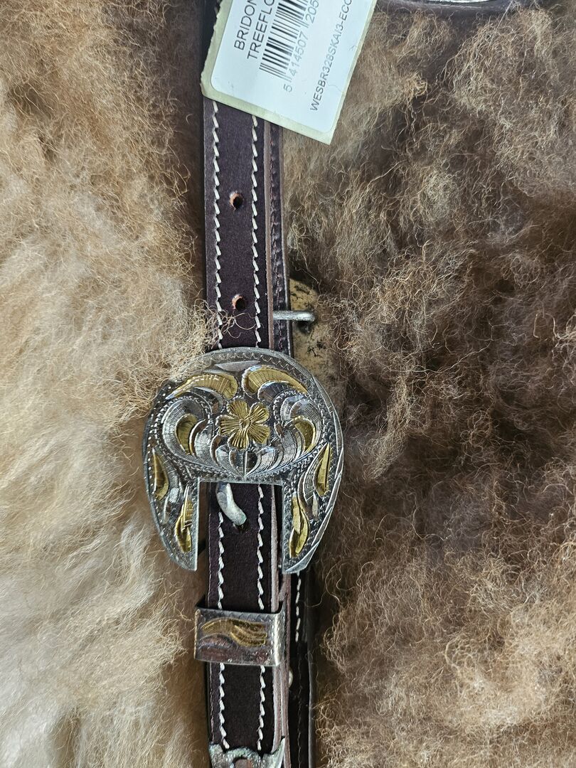 Den matchande huvudstallet med ett öra finns också på begäran. Super vackert stansad och även i färgen rödbrun.
