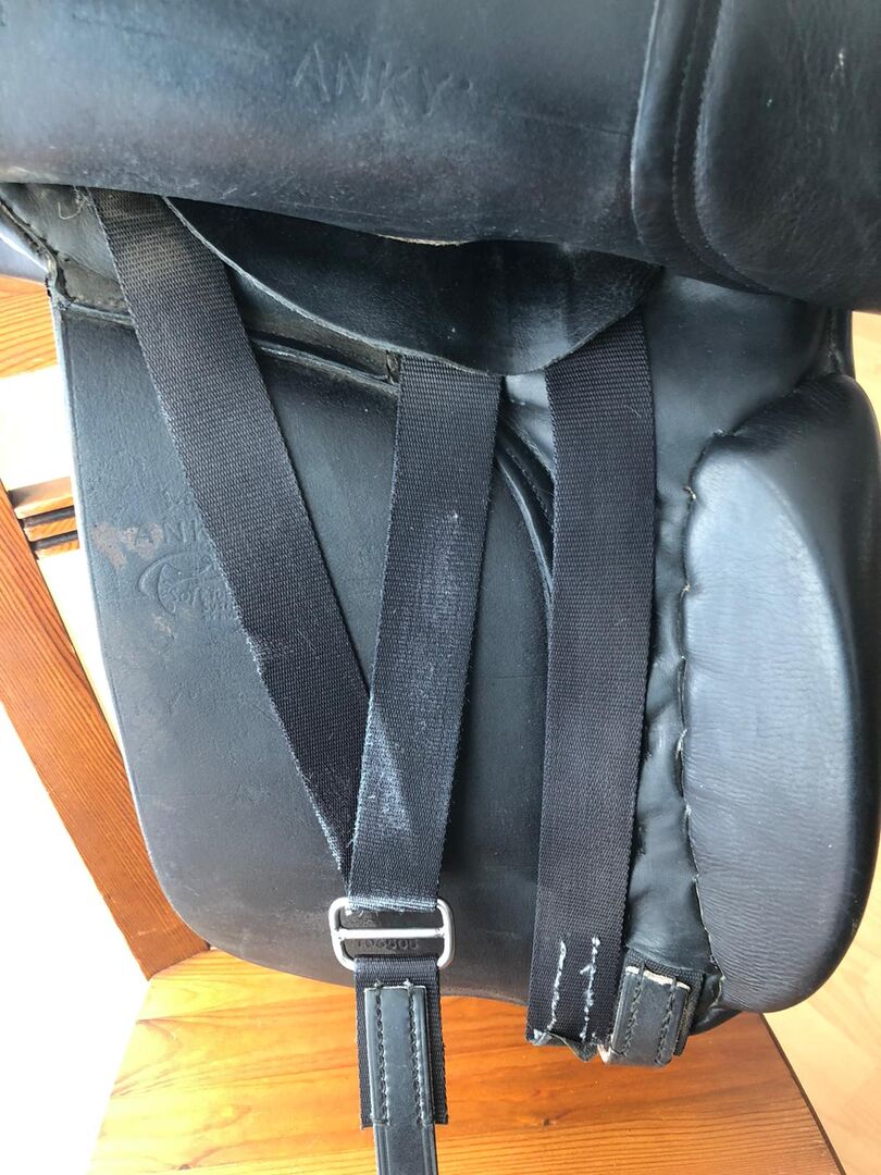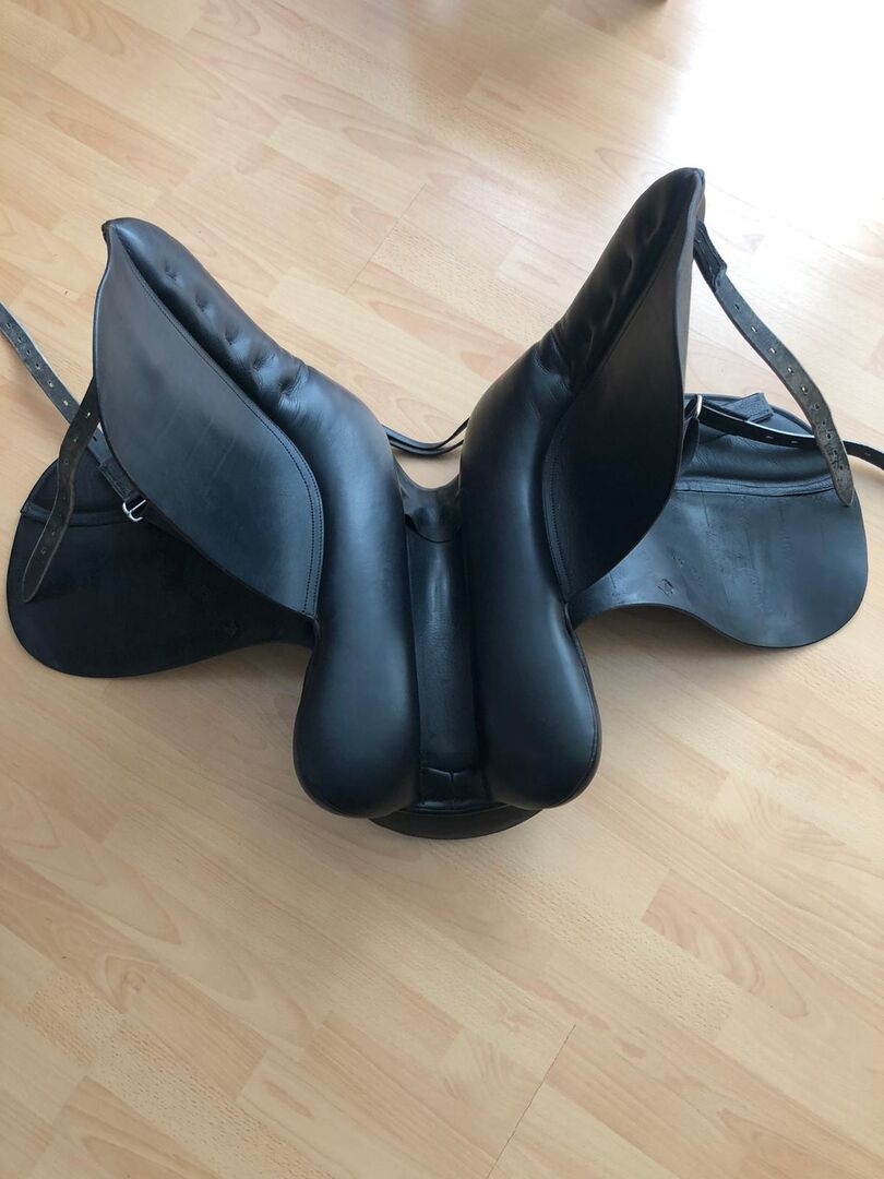 Soft Touch Saddle ANKY SALINERO - Soft touch-sadel ANKY SALINERO från Busse. Högkvalitativ, böjd stålbalk med plastramar. Centralt placerad V-bandsgjord med möjlighet att justera positionen senare. Bred matstrupekanal och mycket frihet vid skänkeln tack vare det eliminerade matstrupshuvudet. Midjesträckt säte. Optimerade lårrullar. Extra tunn stoppning i knäpositionen. Färg svart. Sätesstorlek 15,5". Soft touch-sadelpaneler. 850€ VHB. Plats 65795. Försäljning till en vän.