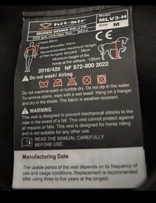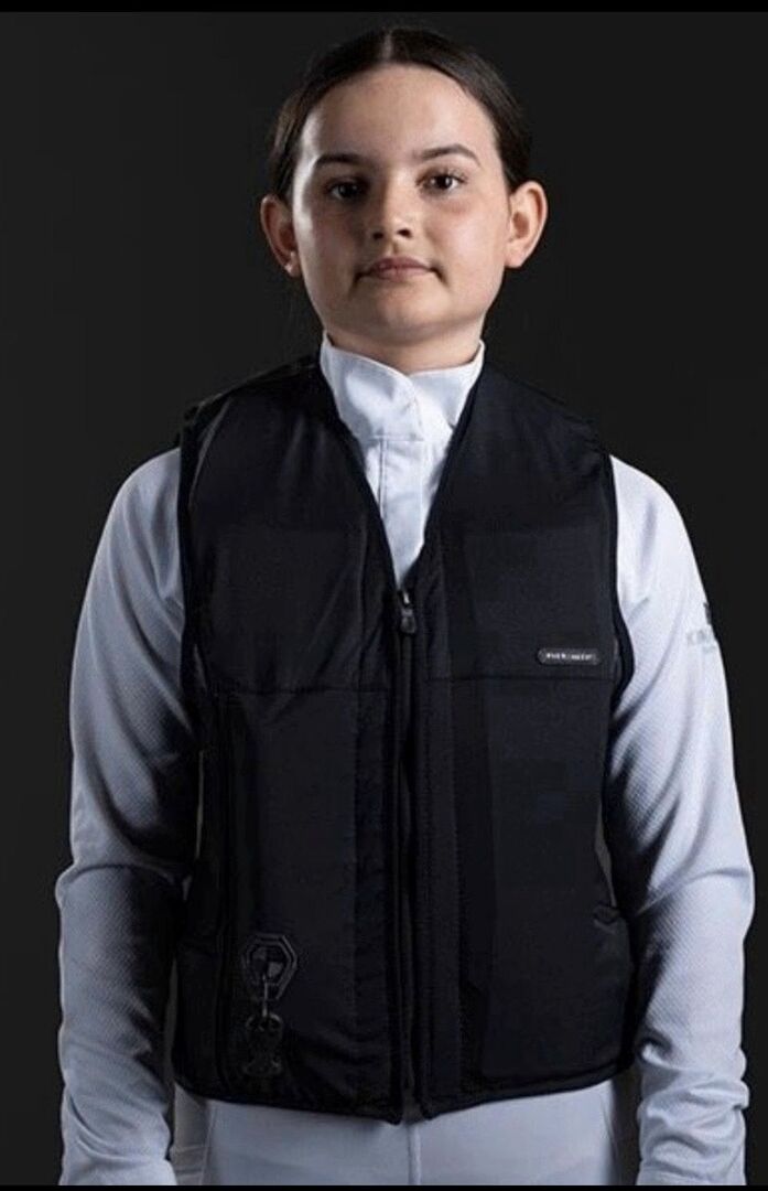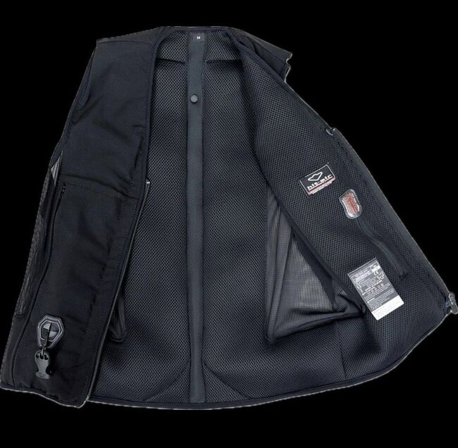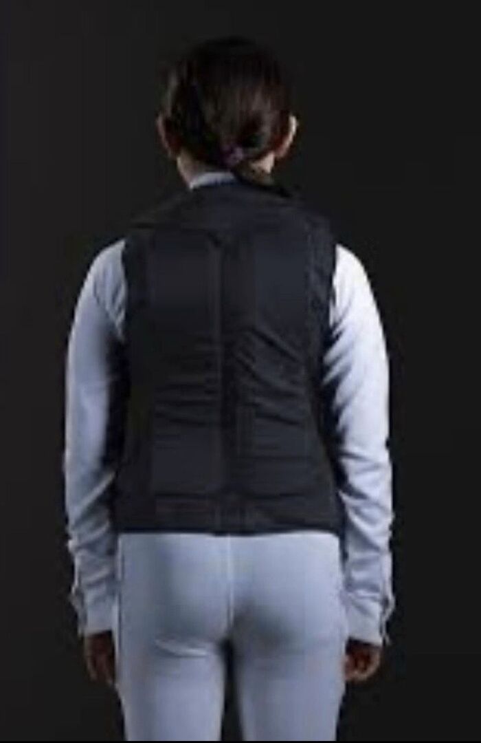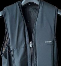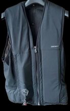 Softshell ridväst airbag väst Hit Air tävlingsväst airbag väst hoppväst - Den senaste airbagvästen från Hit Air imponerar med sitt diskreta utseende och extremt höga bärkomfort. Denna lätta airbag väger ca 900 gram och är tillverkad av tunt, andningsbart och elastiskt nätmaterial, vilket gör västen extremt bekväm. Omsluten av det lätta yttermaterialet anpassar den sig perfekt till bäraren och är fortfarande mycket väl ventilerad.Liksom alla våra västar är Cosiair också utrustad med en stor kudde för halskotorna. Naturligtvis har den, som alla Hitair-produkter, den speciella nackkudden för nödsituationer och airbagkuddar i bröst- och ryggområdet. Den extra utfällbara bäckenkudden har utelämnats. Den slimmade designen runt utlösningsmekanismen och patronen gör att de båda framstår som diskreta och mindre framträdande. Jag köpte västen, som är flexibel i storlekarna S till M tack vare mesh och stretchigt softshell-tyg, som ny i juli 2024 men använde den bara ibland på hopptävlingar fram till september 2024, så den är absolut som ny utan några tecken på slitage. Jag har inte haft några fall med den och airbagen har aldrig utlösts, originalpatronen är fortfarande installerad.