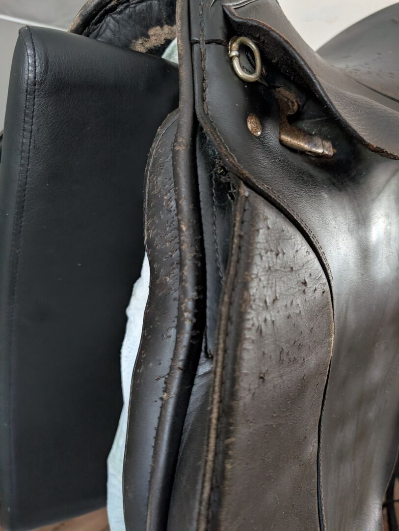 Sommar ,VS-sadel, ridsadel, nybörjarsadel - Jag säljer en äldre sommar VS sadel som egentligen är i bra skick, tyvärr har en katt haft mycket roligt med sadeln och den har diverse repor. Därav det förmånliga priset. Sadeln har dock inga öppna områden och kan fortsätta användas utan problem. Gjordstropparna är i mycket gott skick. Sadelkammarens bredd 29,5 (se foto) Sitsstorlek 17 tum.