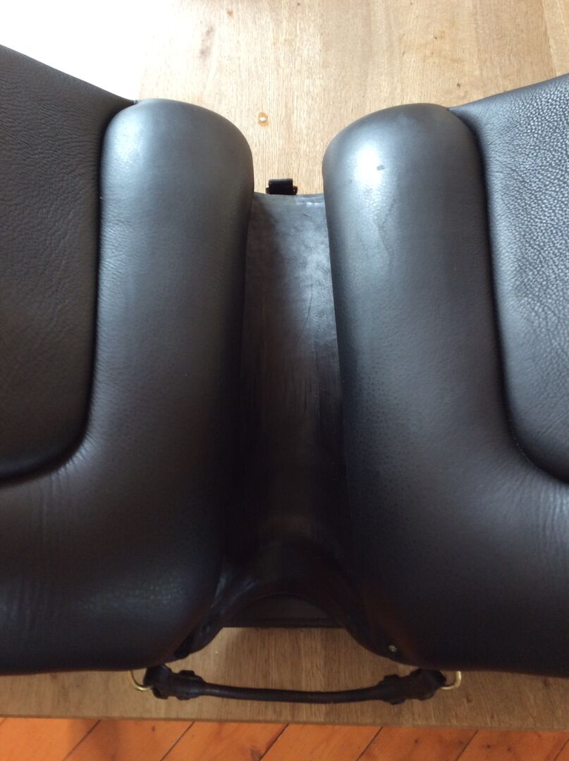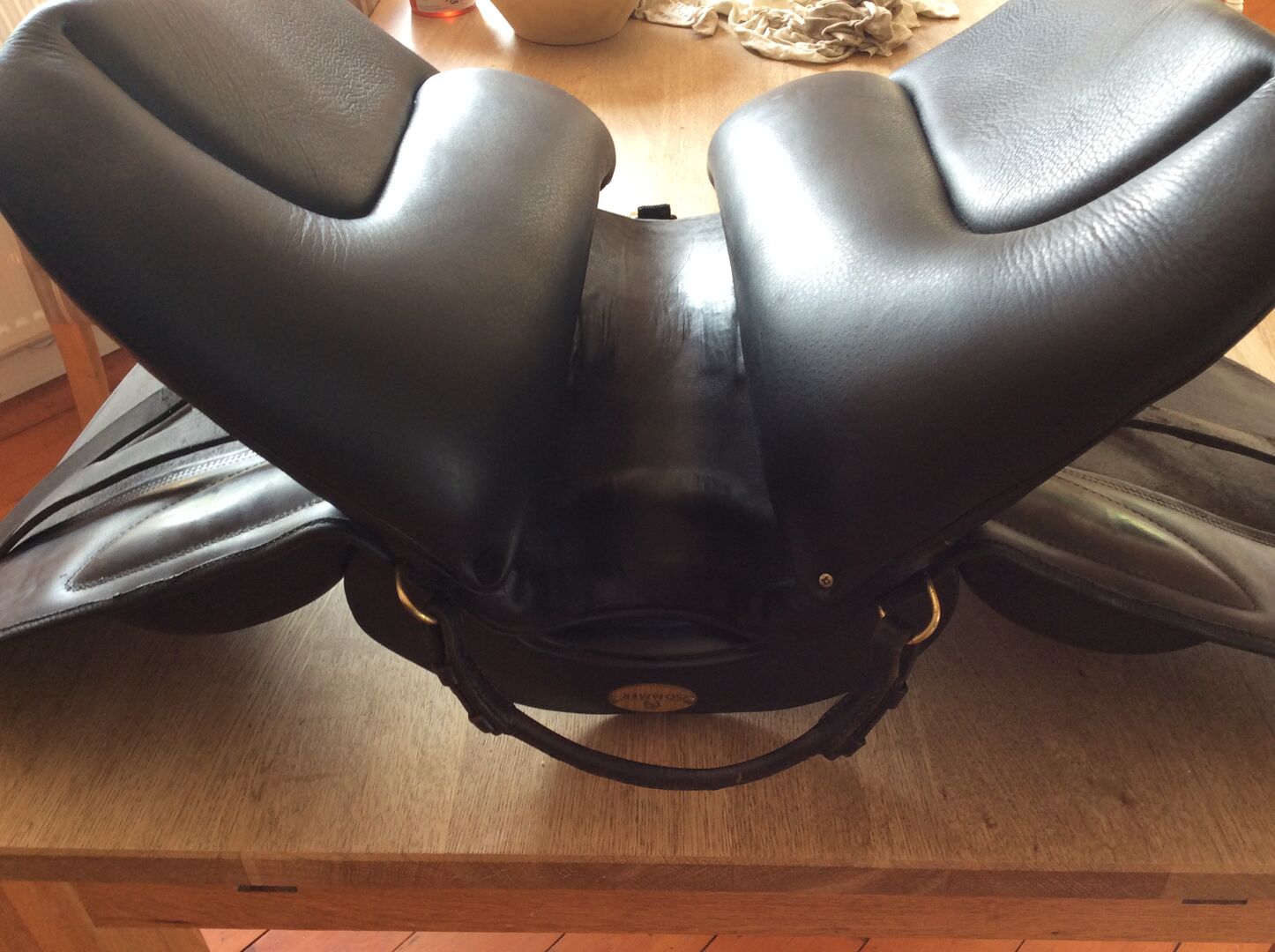 Sommarresa - Sommer Voyage svart 18 tum/aktuell 32/33 mm justerbar kammare. Fin, bekväm sadel för terrängridning, dressyr, working equitation med avtagbart galleri i mycket gott skick. Ridits väldigt lite på grund av min graviditet och hästens sjukdom. Nyligen vadderad. Passade på ett starkt Hannoveranskt sto med medelhög manke och lite sväng, men är mycket lätt att justera. Ingen avsändning vid rättegång. Kan provas på plats. Ta bort för rättegång mot deposition av hela inköpspriset. Ingen retur eller garanti, privat försäljning.