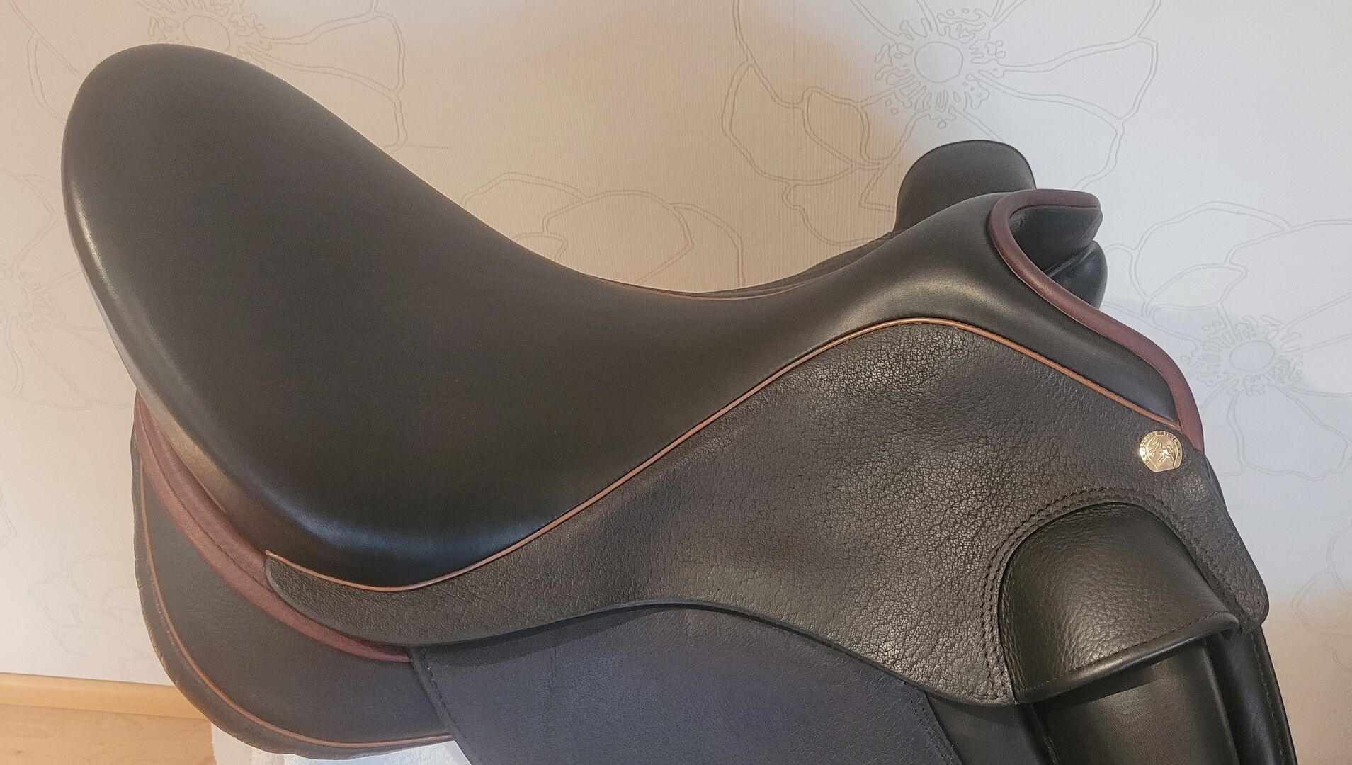 Sadeln har alltid tagits om hand, regelbundet smörjts och förvarats professionellt. Den är ren och fri från skador. Den säljs på grund av en övergång till fälttävlan.