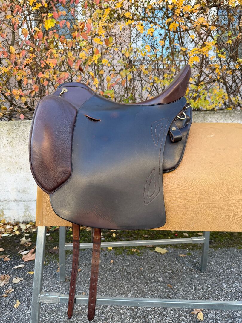 Sommer Salvadore dressyr och fälttävlan - Säljer min vackra sadel från Sommer, modell Salvadore i färgen mocha. Passar perfekt för dressyrridning men också för långa terrängritter. H 7 - djup sits, sits-knäparti i kalvskinn moro, WK 7 cm, sadelklaff 3 cm längre, WKE-bom (U-formad kotlettplatta för stor mankhöjdsfrihet), kardborreband, förkortade paneler för hästar med kort rygg, sömmar moro, mässingsbeslag, 2 extra D-ringar baktill.