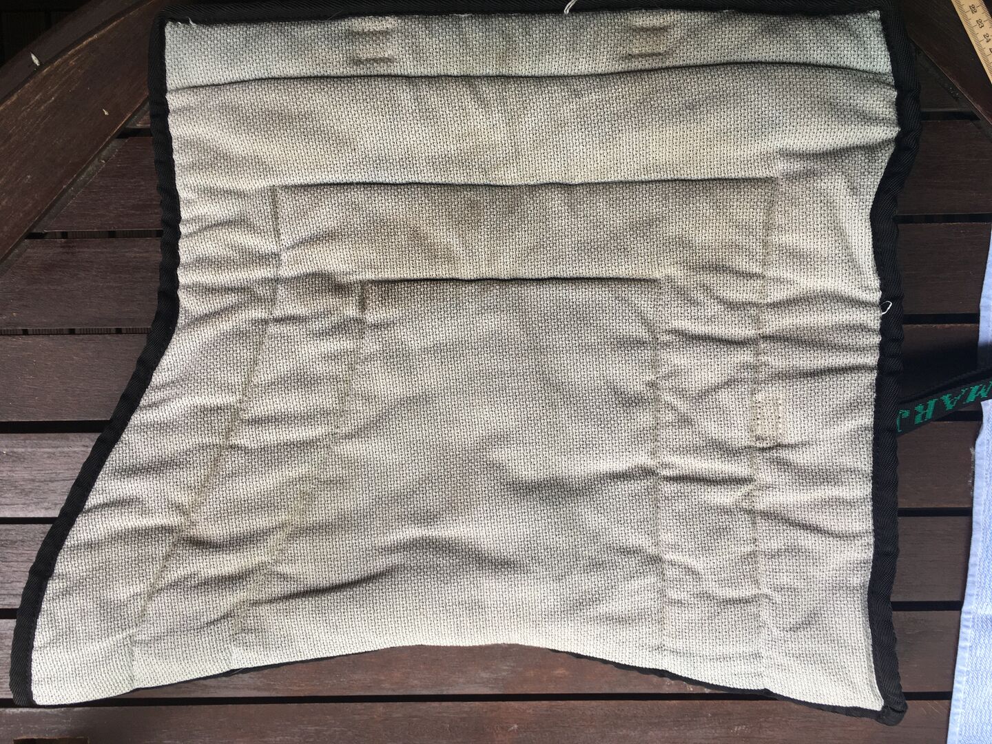 Vi köpte sadelskyddet begagnat själva, men tyvärr passar det inte vår sadel och har därför bara satts på, inte ridits av oss. Det kommer därför att säljas vidare som köpt...