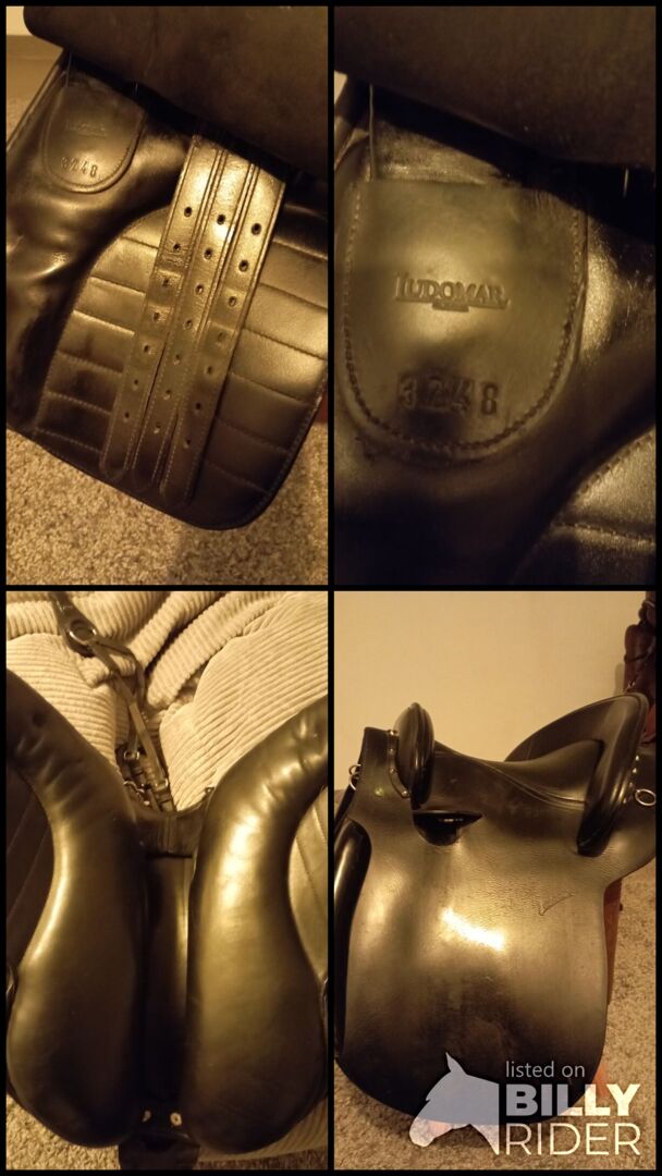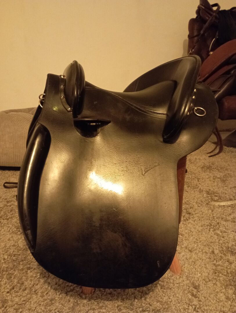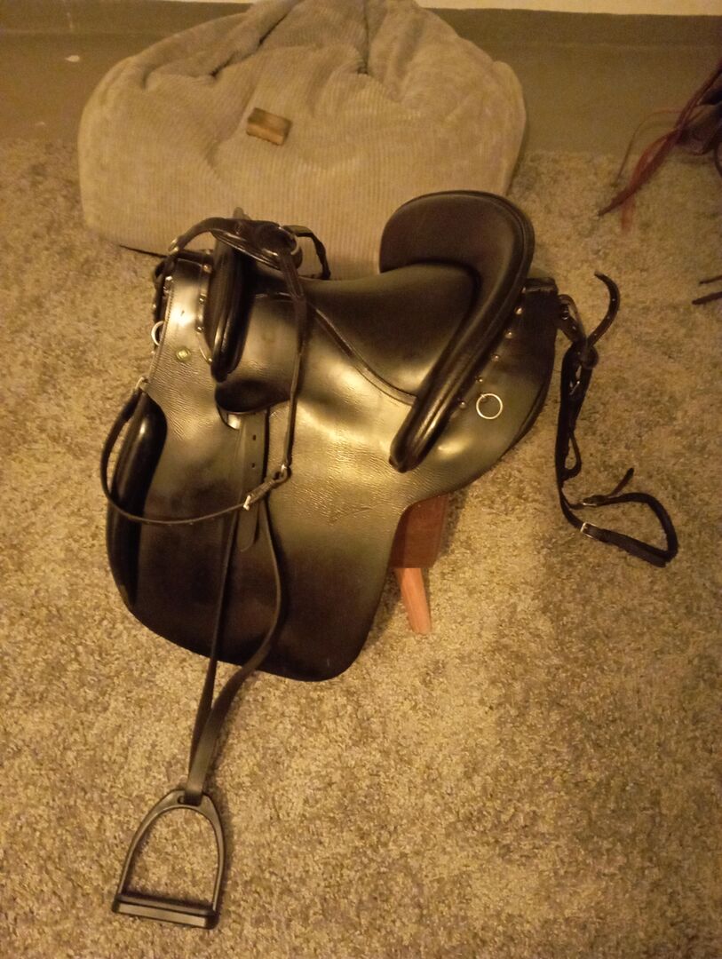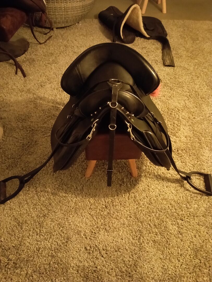 Spanska Ludomar svart - Jag erbjuder till salu min mycket bekväma sadel i mycket gott skick ... den är begagnad, jag tog över den själv i gott skick och tog hand om den ... den användes på en Haflinger-sto och på min barocka Irish Cob ... så väldigt kort och bred ... sadeln ger utmärkt täckning och har mycket bra tryckfördelning tack vare de stora panelerna.Kontaktytan är 45 cm, den totala längden är 47 cm, sätet är 29 cm, kanalen är 5 cm bred hela tiden, över manken är den 14 cm, bröstplatta och krupp i cob-storlek, stigläder 145 cm, allt i svart läder och en normal Kieffer-sadelgjord i bomullsnylon 70 cm, begagnad (om du inte är känslig) Jag gillar inte att tvätta saker jag borstar ut dem).