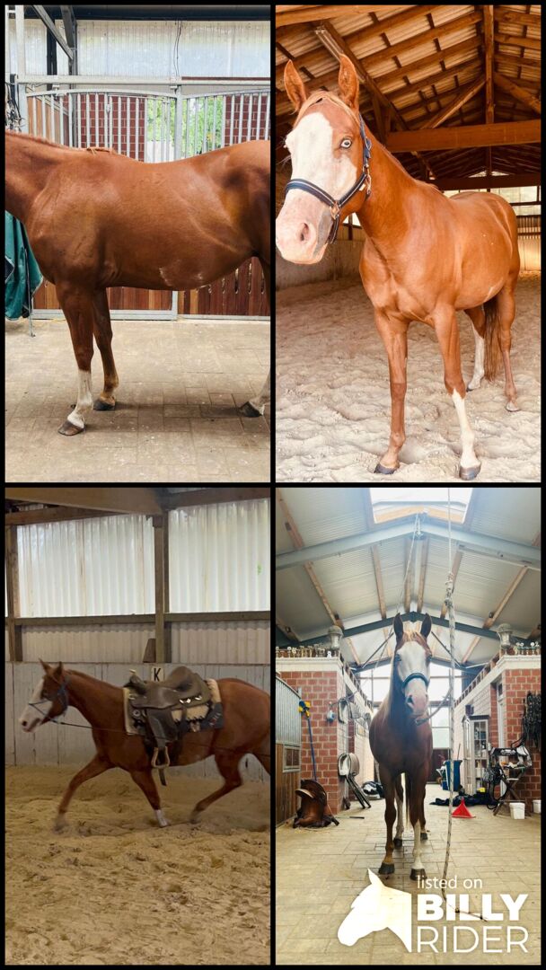 Speciell Paint Horse-valack för sport och fritid - Plats: 31595 Steyerberg Till salu är den vackra Paint Horse-valacken Peter, född i mars 2021, med en höjd av cirka 150 cm. Han är en Sorrel Overo med två blå ögon och imponerar med sin fantastiska färg, sin goda grund, sin stora inramning och korrekta konformation samt sina uttrycksfulla gångarter. Peter är vid god hälsa, regelbundet vaccinerad och avmaskad, är lämplig för smide och för närvarande oskodd. Han har vuxit upp i en flock sedan fölåldern och har fått växa upp i lugn och ro under de bästa förutsättningarna. Valacken känner till 24/7 betesmark samt ett öppet stall och box och är mycket väl socialiserad. Han är väluppfostrad, avslappnad, vänlig och människovänlig. Peter är cool, inte hoppig, har en härlig karaktär och tycker uppenbarligen om att lära sig nya saker. Peter är inriden och kan såväl markarbete som arbete i dubbel lina. Tack vare sin förstklassiga allroundstamtavla (far: Whataholic: flerfaldig Europamästare, Futurity Champion, APHA Honor Roll Champion 2019, mor är en dotter till Zippo's Mr Good Bar) är han intressant både för tävlingar och som fritidspartner och lovar att bli en mycket bra sporthäst med ytterligare stöd. Hans fader kan inspekteras på plats och APHA-papper har ansökts. På grund av personliga omständigheter säljs han med ett tungt hjärta i de bästa händerna. Vi letar efter en plats där han kommer att fortsätta att stödjas och uppskattas.