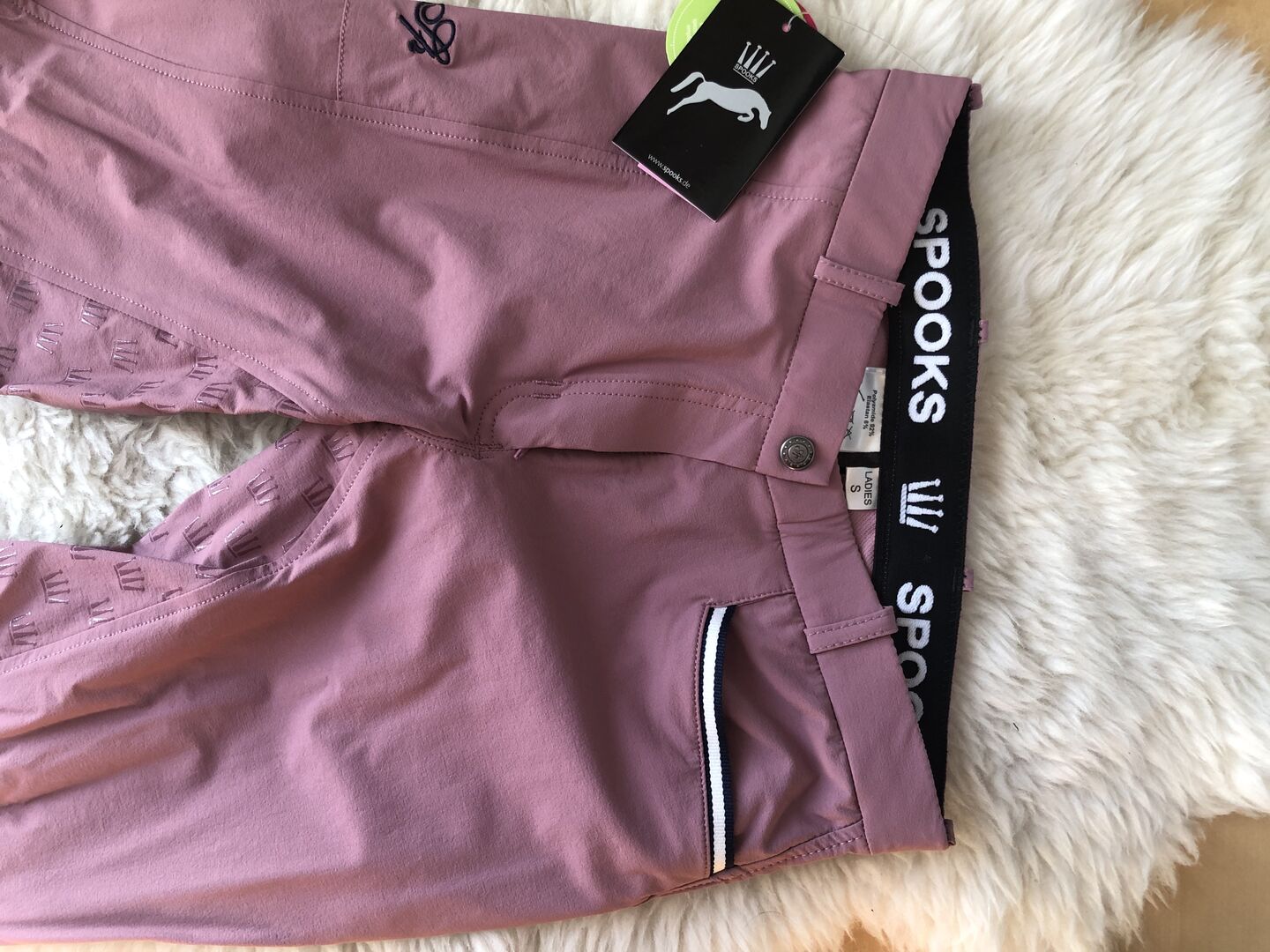 Nya reithoser med fullt grepp från Spooks. Schöne rosa Farbe, vor allem för den Frühling und Sommer schön. Ungetragen, mit Preisschild. Neupreis 120 EUR.