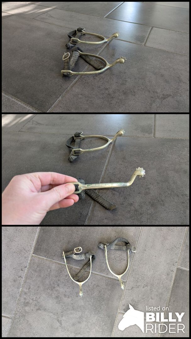 Sporrar med svanhals och tandade hjul - Svanhalssporrar med tandade hjul och sporremmar till salu.